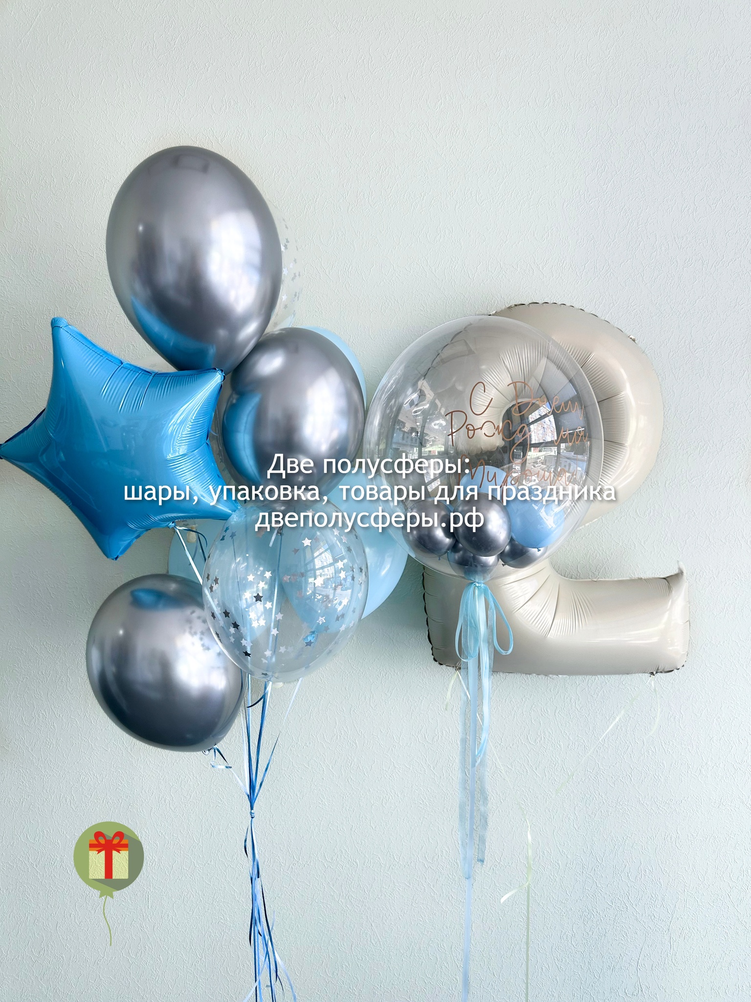 Фонтан из 7 штук: звезда 45 см, 3 шара хром, 1 шар с конфетти и 2 шара пастель; а так же цифра 102 см и сфера 60 см с шарами+ надпись. Грузики и пакеты включены в стоимость.