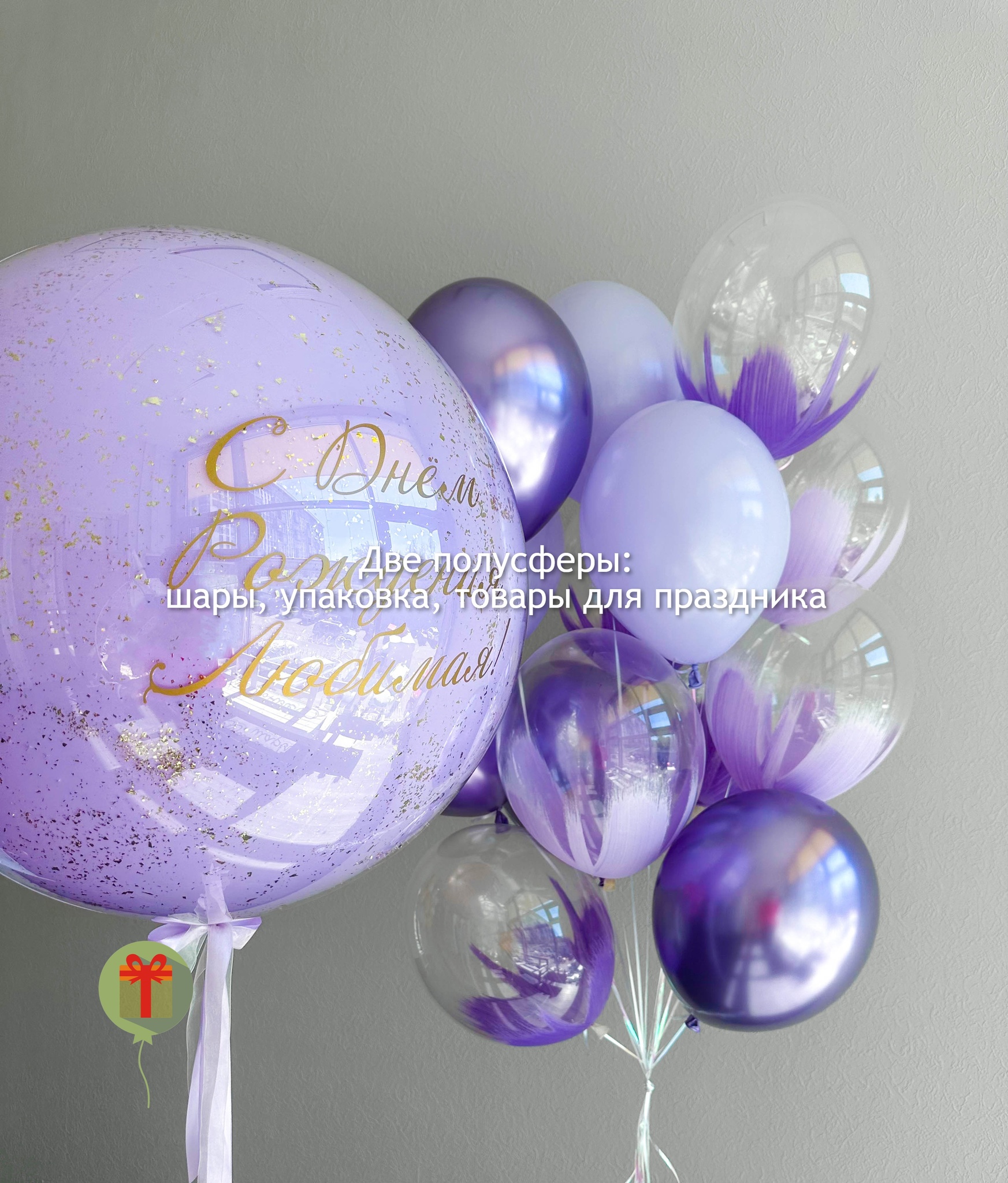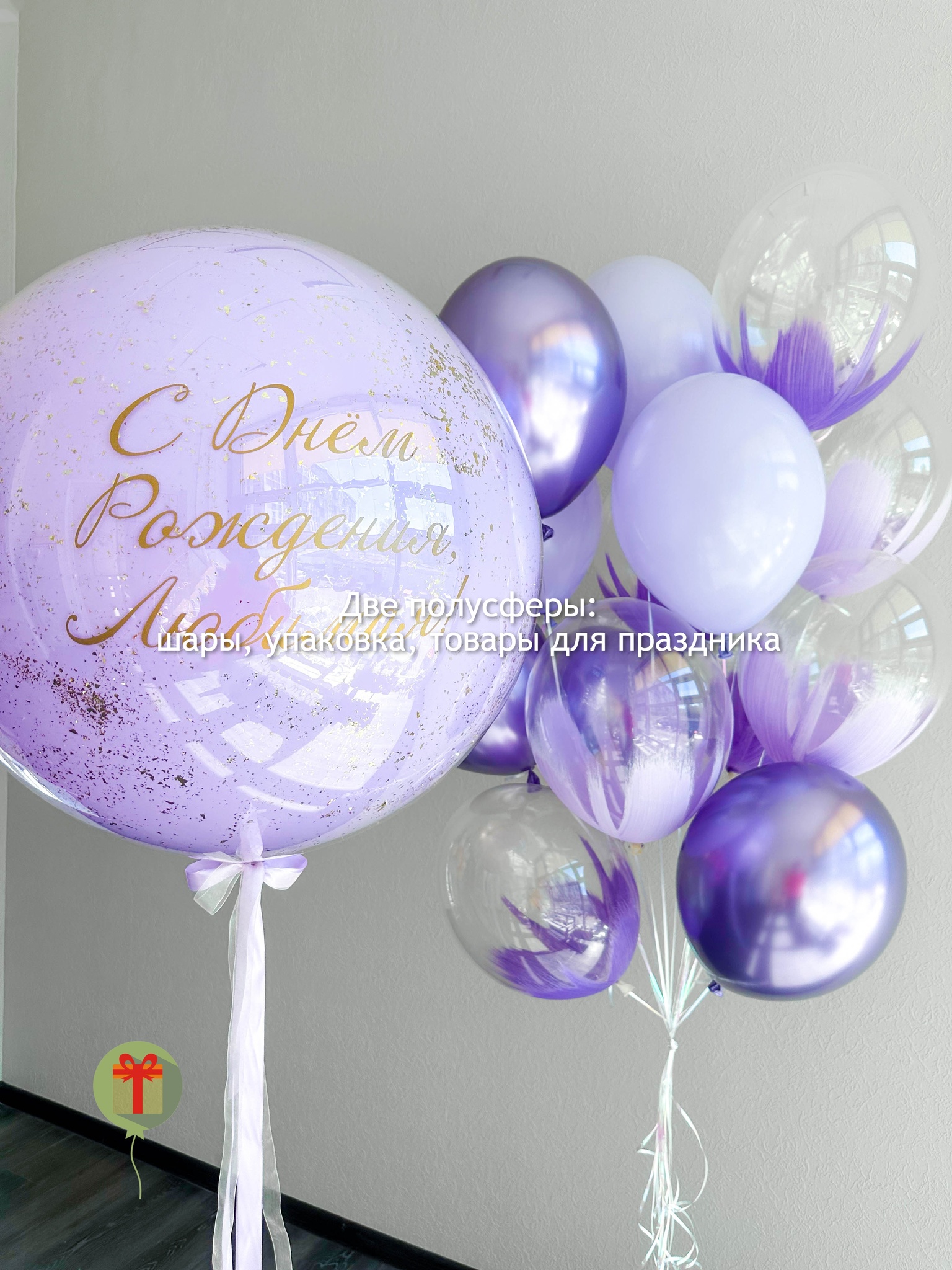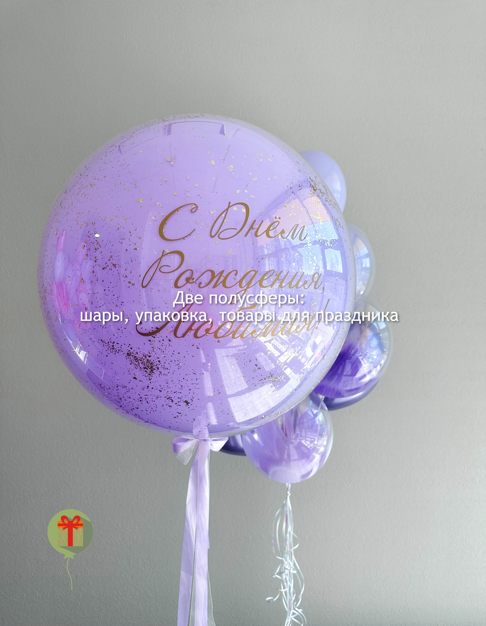 Сфера дабл бабл 60 см+ надпись и фонтан из 13 штук: 7 шаров браш, 3 шара хром и 3 шара пастель. Грузики и пакеты включены в стоимость.