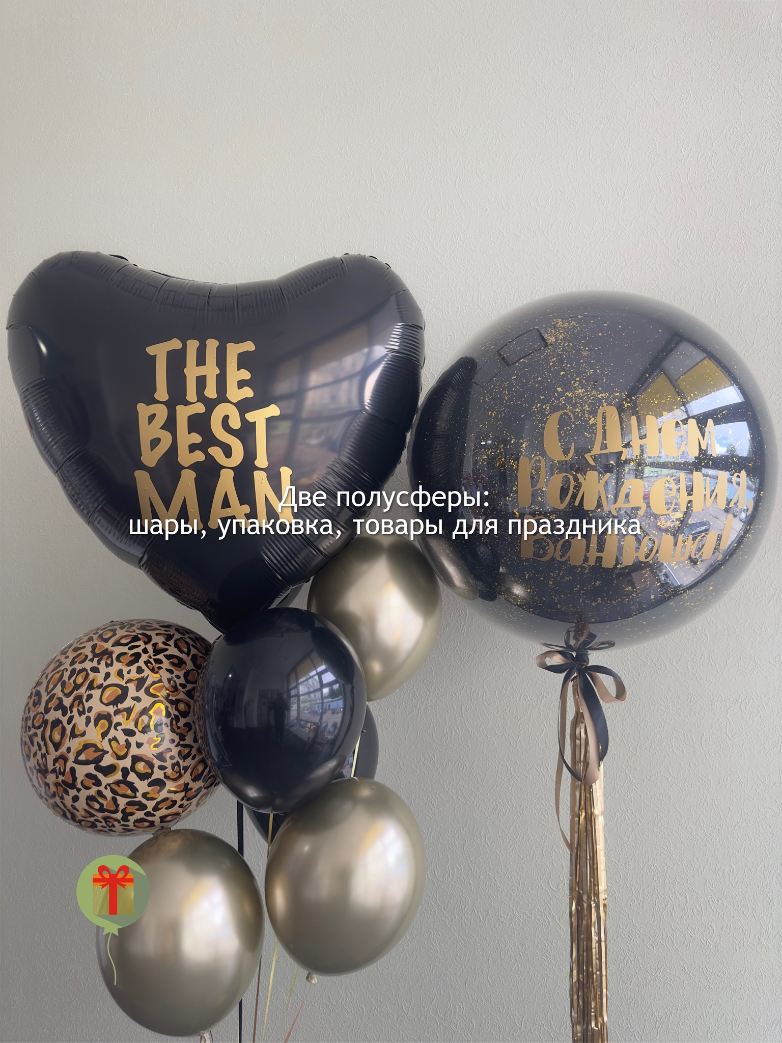 Фонтан из 9 шаров: сердце 60 см+ надпись, шар 45 см, 4 шара хром и 3 шара пастель; а так же сфера дабл 60 см+ надпись. Грузики и пакеты включены в стоимость.