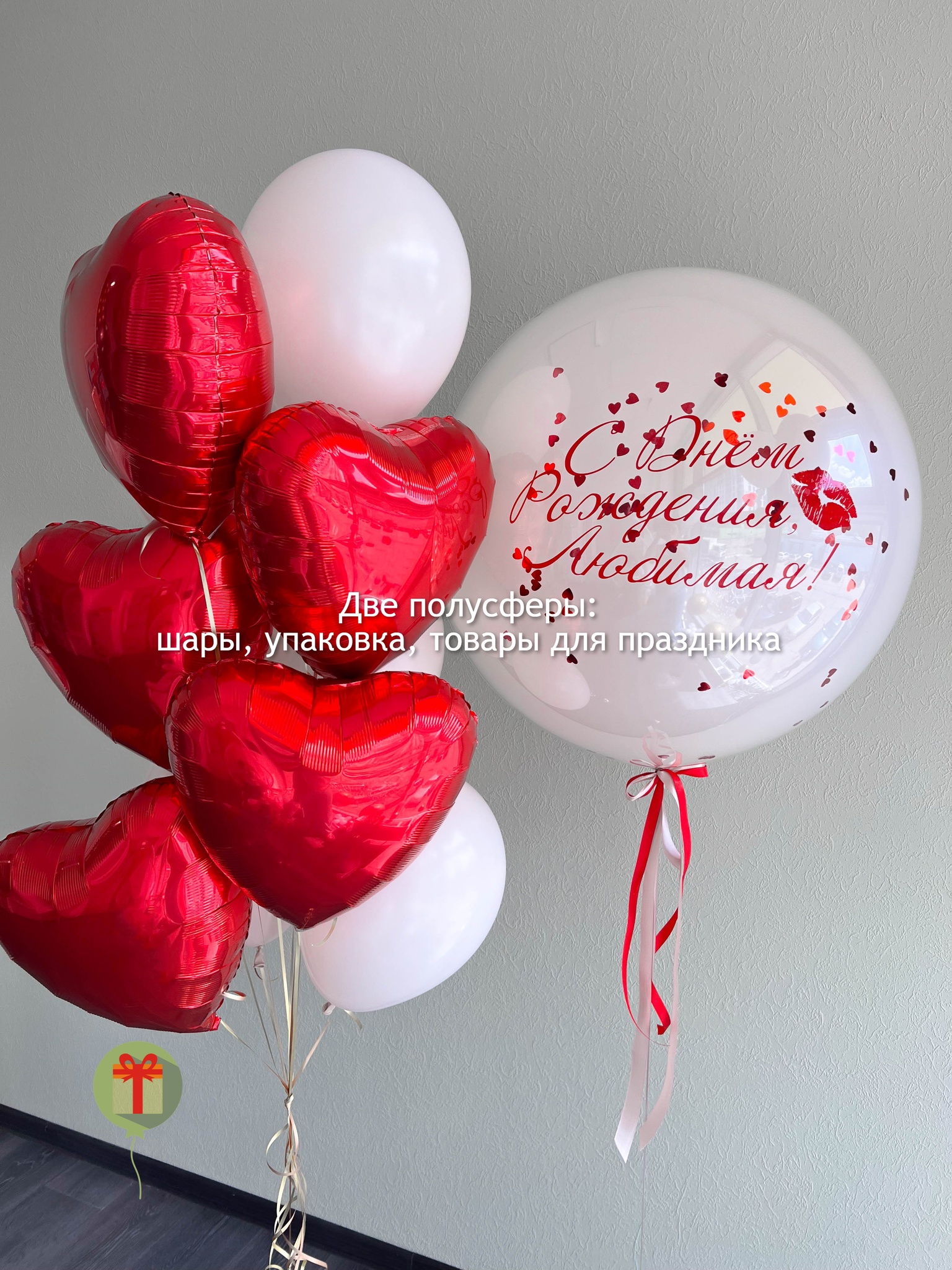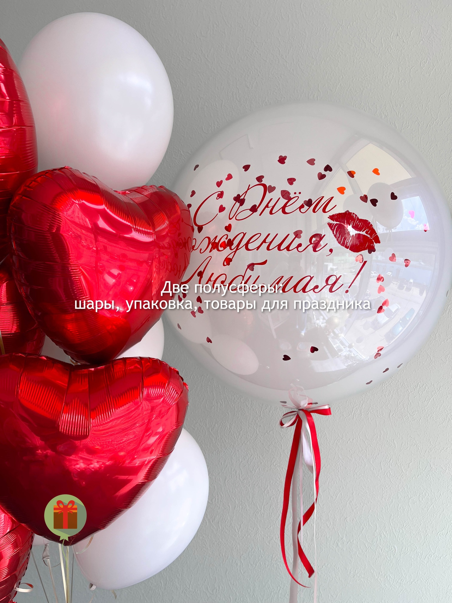 Сфера дабл бабл с конфетти 60 см+ надпись и фонтан из 10 штук: 5 сердец 45 см и 5 шаров пастель. Грузики и пакеты включены в стоимость.
