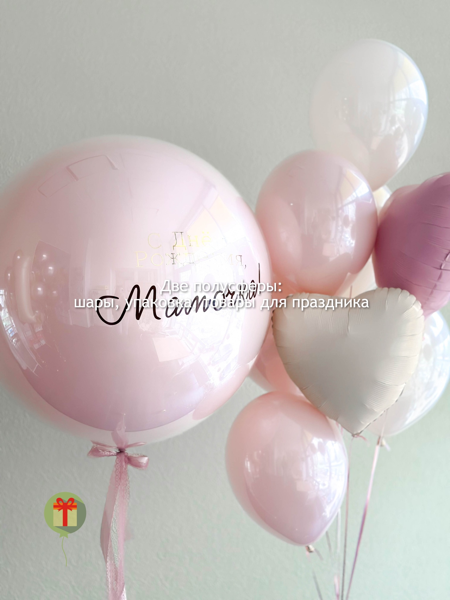 Сфера дабл бабл 60 см+ надпись и фонтан из 7 штук: 2 сердца 45 см и 5 двойных шаров пастель. Грузики и пакеты включены в стоимость.