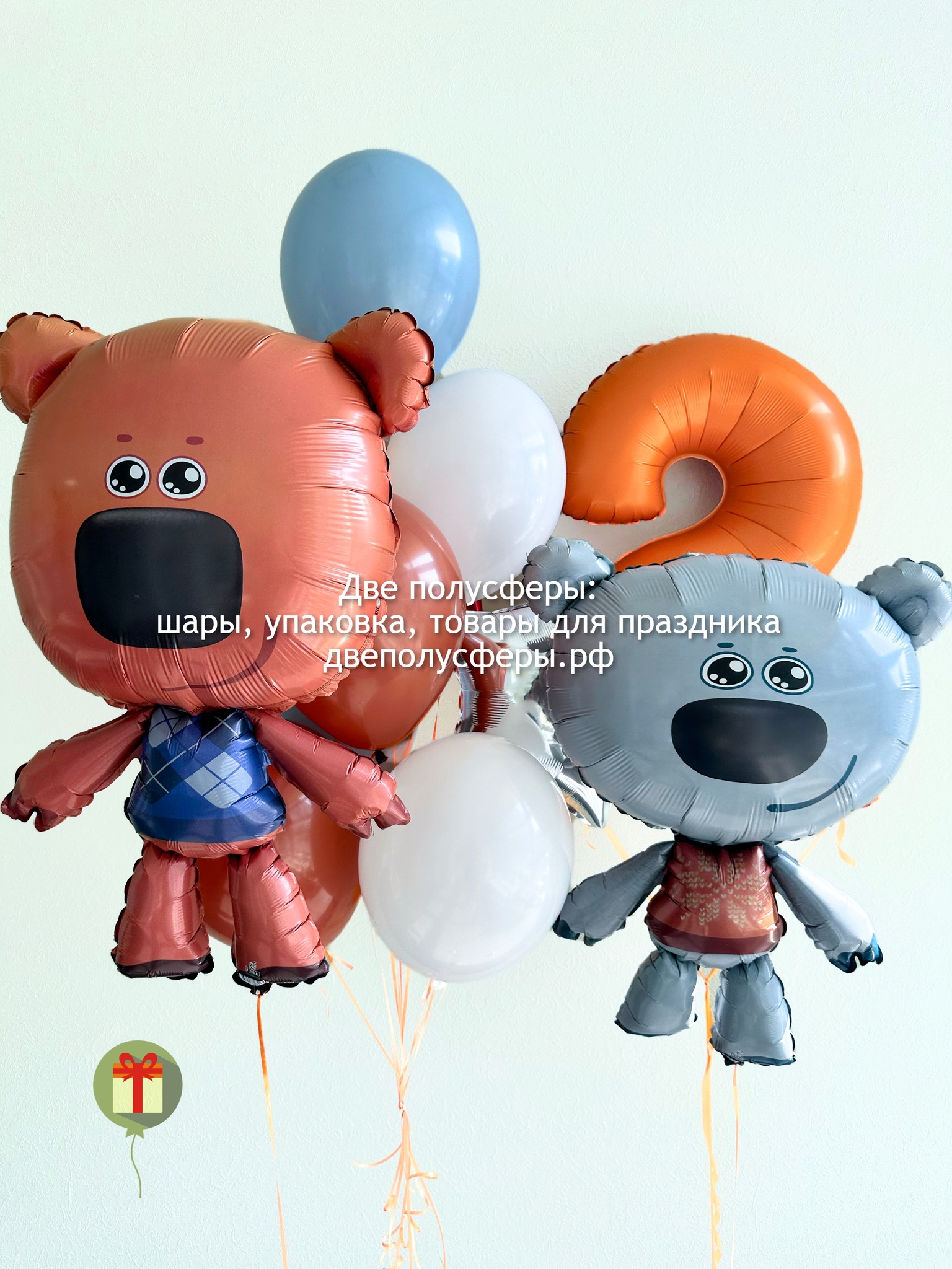 Фонтан из 10 штук: звезда 45 см и 9 шаров пастель; а так же цифра 102 см и 2 фигуры мишек. Грузики и пакеты включены в стоимость.