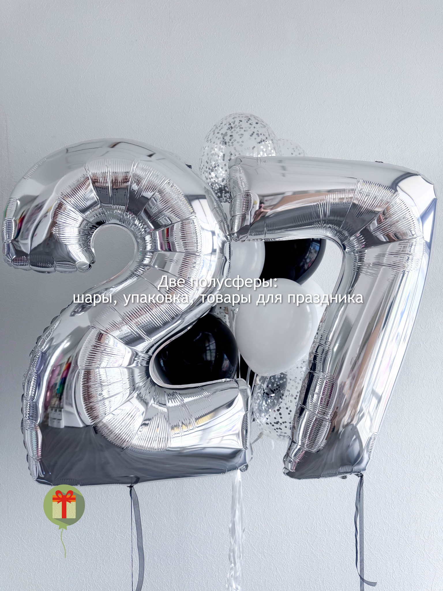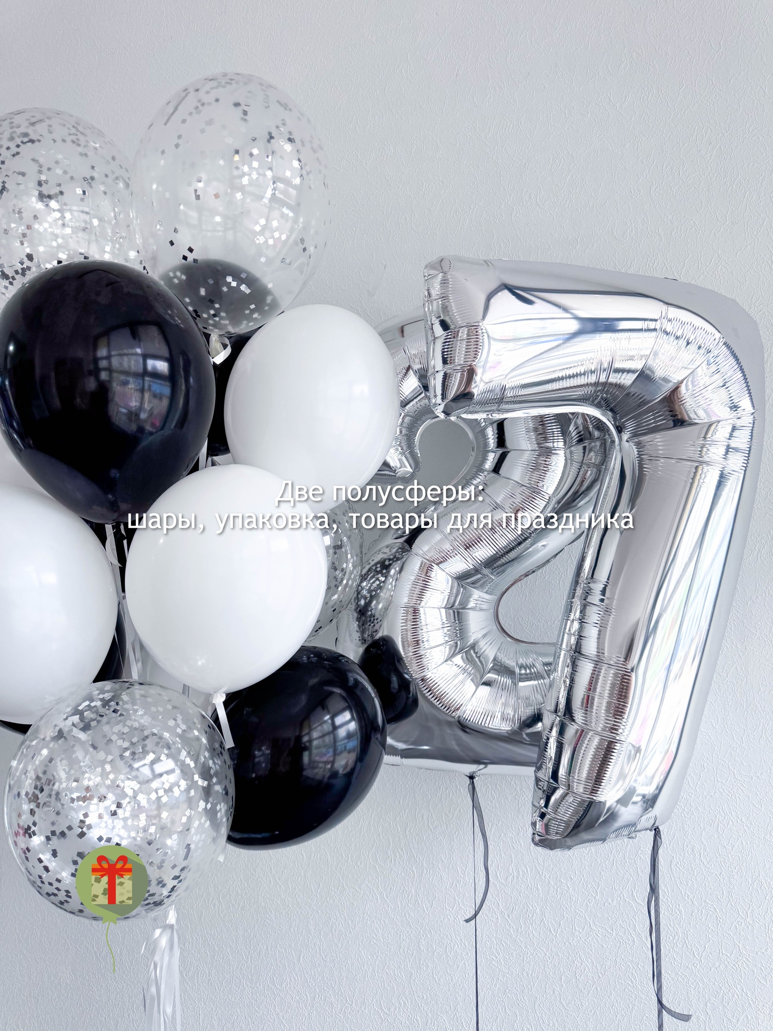 Стильный фонтан с фольгированными цыфрами 102 см и фонтаном из 13 шаров, 5 шаров с конфетти и 8 шаров пастель, грузик и пакет входят в стоимость.