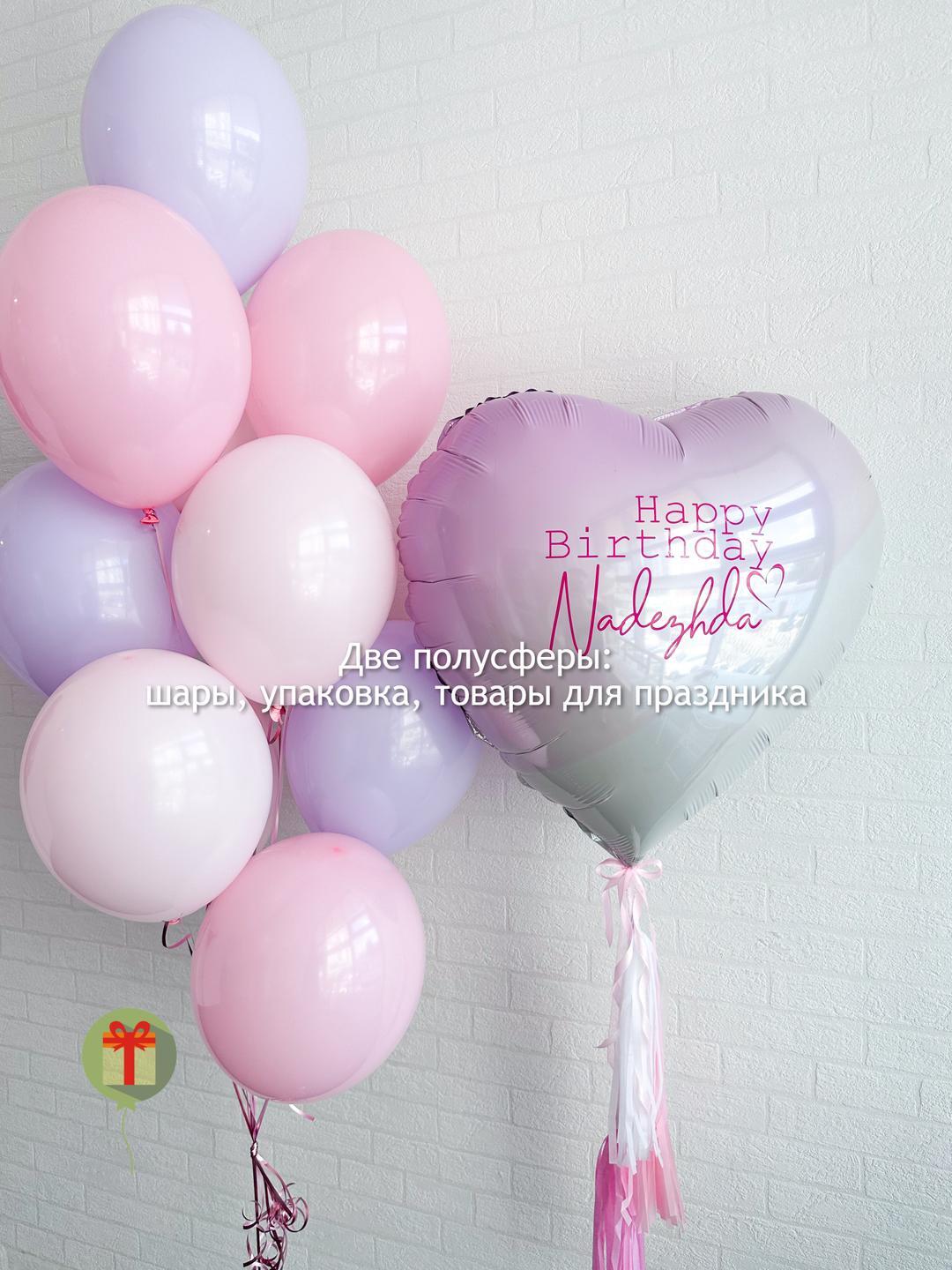 Нежный набор в пастельных оттенках для девушки. В составе: фольгированное сердце 60 см+ надпись, декорированное пышным хвостом и фонтан из 10 шаров пастель. Грузики и пакеты включены в стоимость.