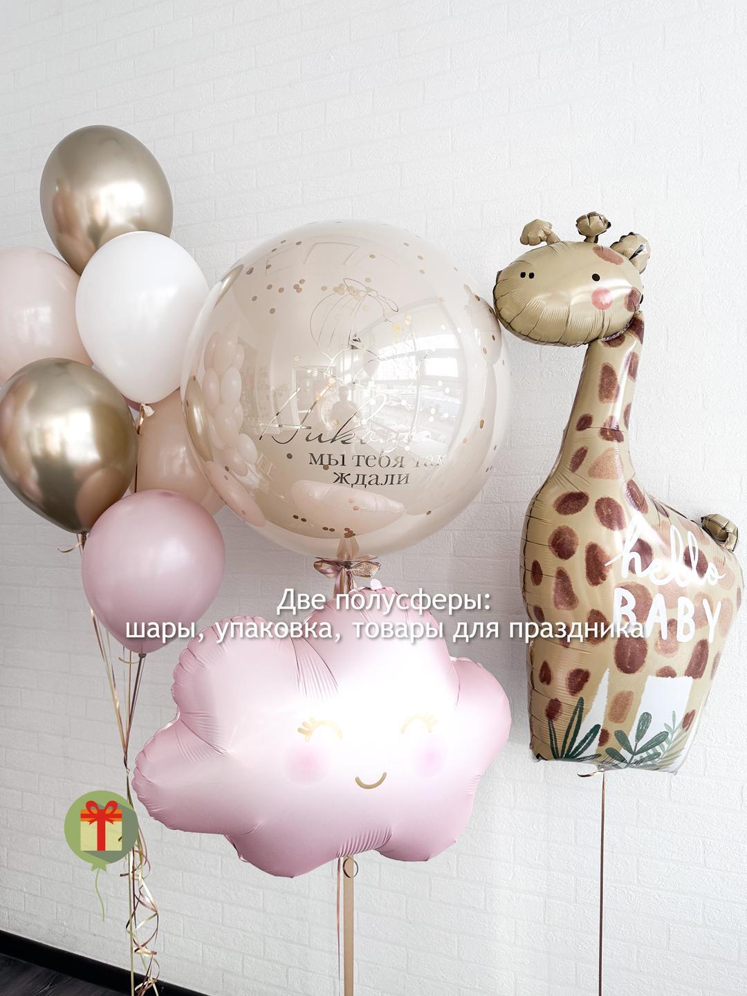 Сфера дабл бабл 60 см с надписью ,фонтан из 7 шаров: 2 шара хром и 5 шаров пастель; а так же 2 фигуры. Грузики и пакеты включены в стоимость.