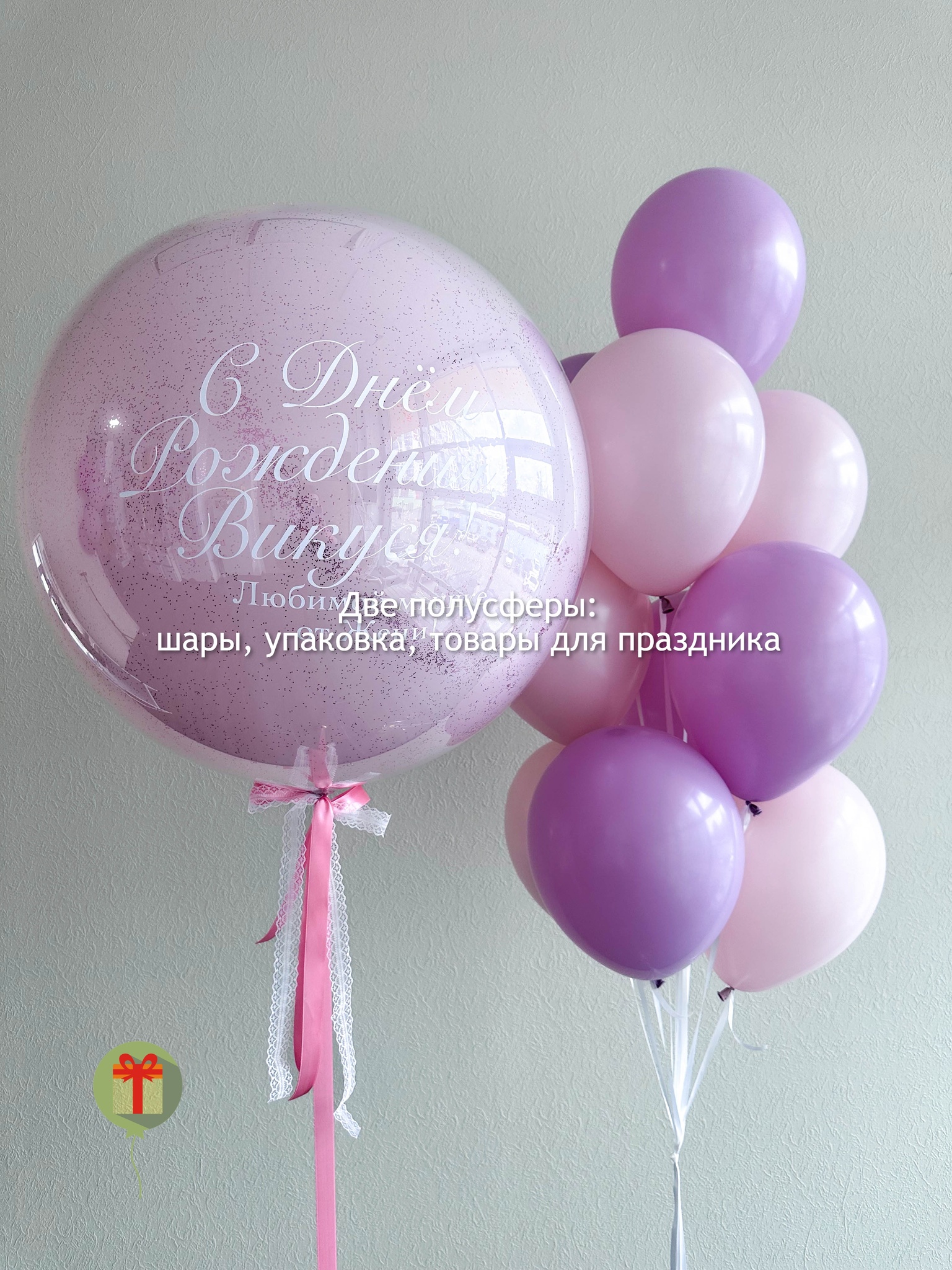 Сфера дабл бабл с конфетти 60 см+ надпись и фонтан из 10 шаров пастель.  Грузики и пакеты включены в стоимость.
