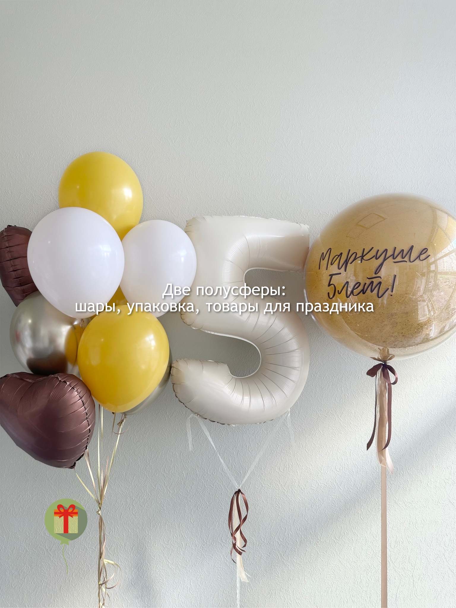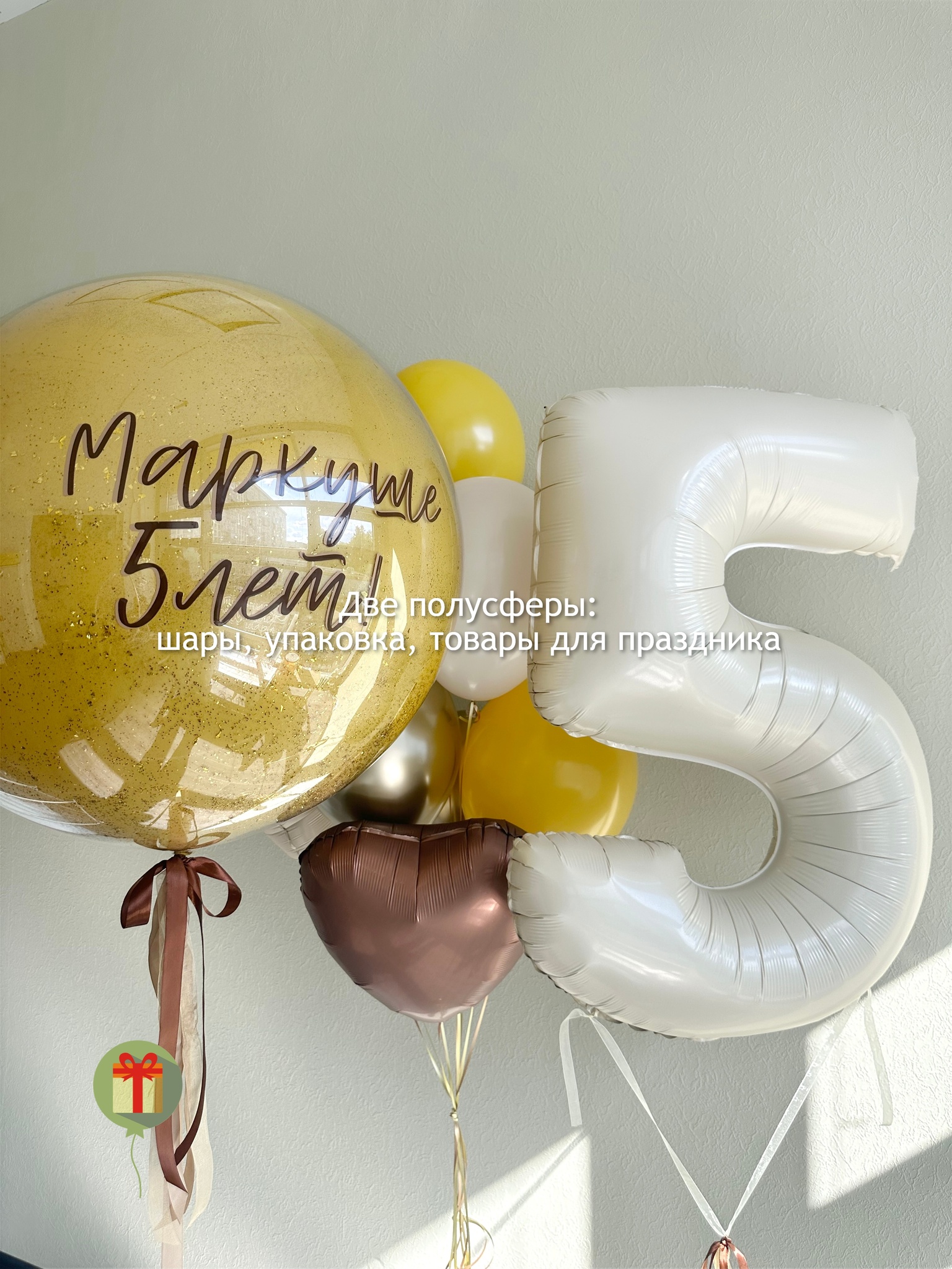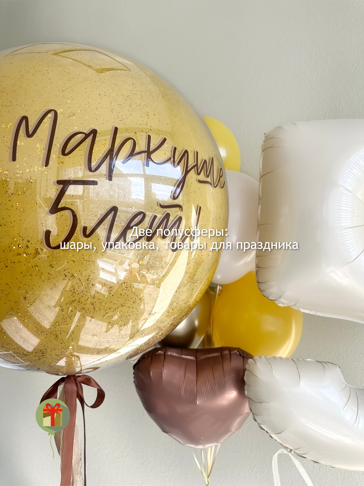 Сфера дабл бабл 60 см+ надпись, цифра 102 см и фонтан из 9 штук: 2 сердца 45 см, 3 шара хром и 4 шара пастель. Грузики и пакеты включены в стоимость.