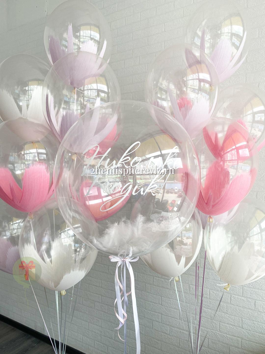 Нежный набор в пастельных оттенках! В составе: 2 фонтана по 10 шаров браш и сфера 60 см с перьями внутри+ надпись. Грузики и пакеты включены в стоимость.