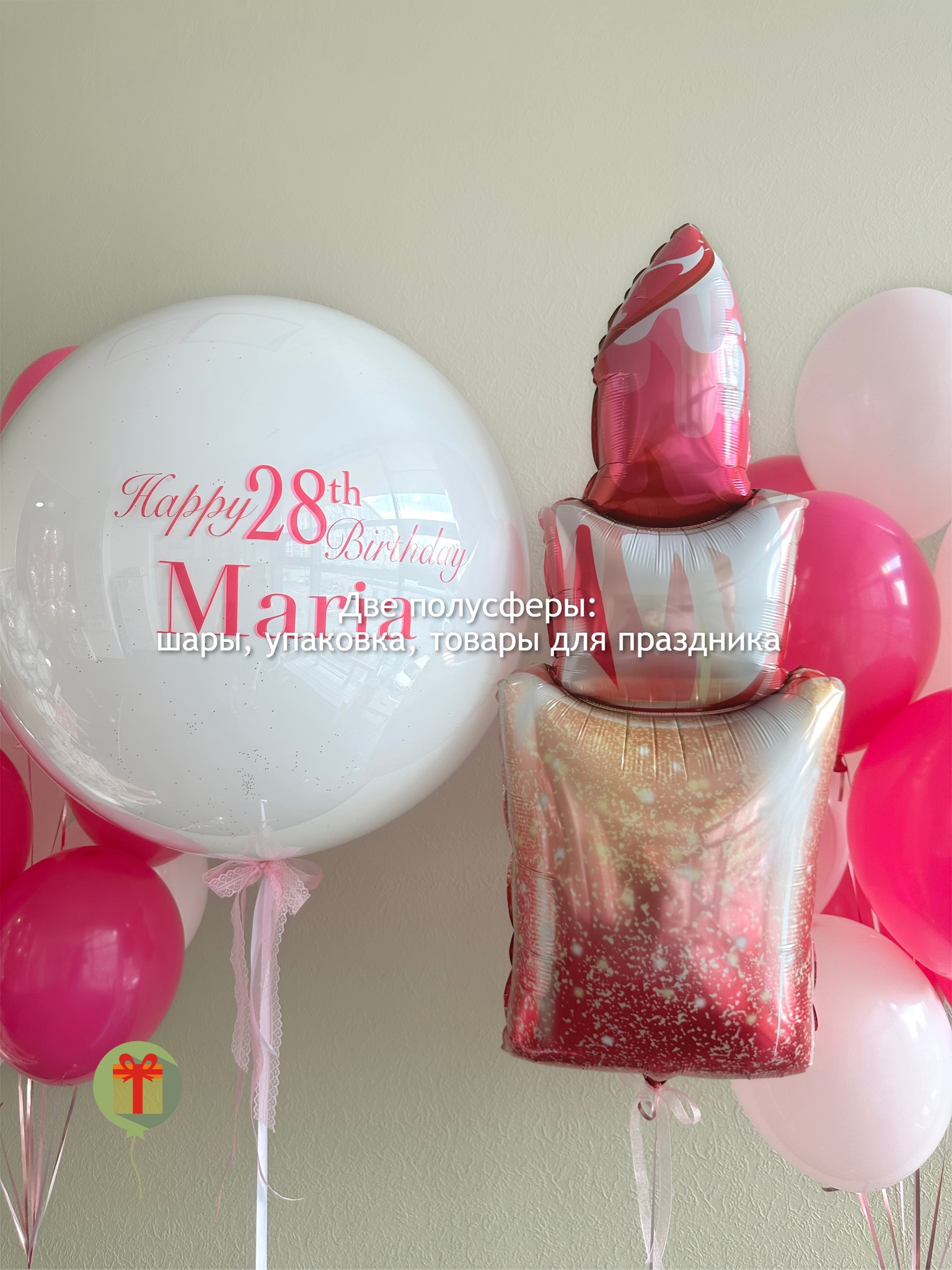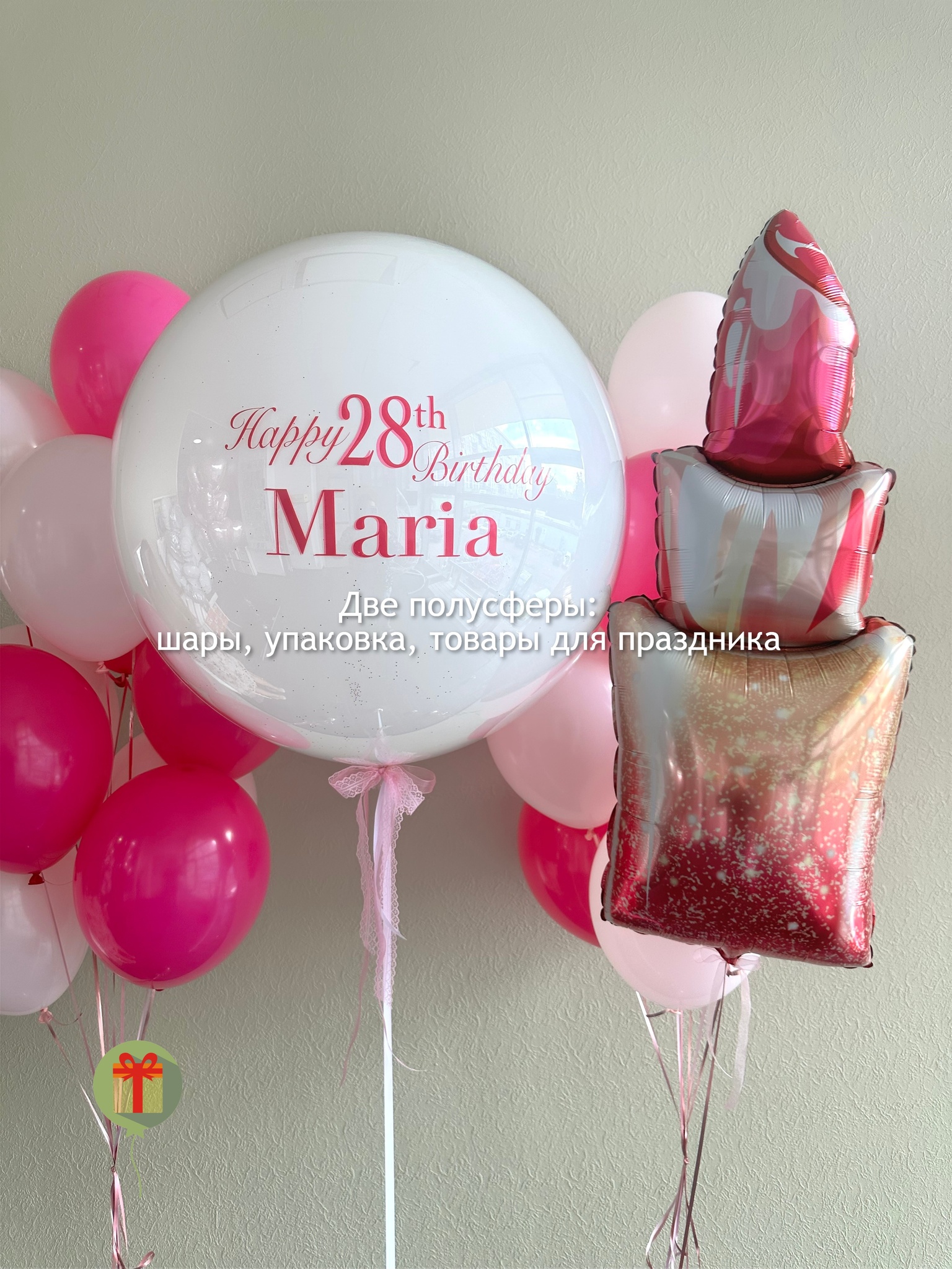 Сфера дабл бабл 60 см+ надпись, фигурка помадки и 2 фонтана по 10 шаров пастель. Грузики и пакеты включены в стоимость.