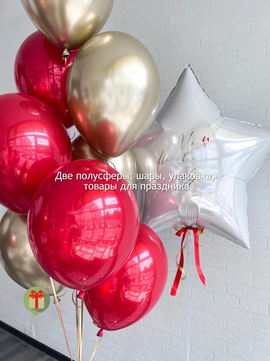 Фонтан из 8 шаров: 4 шар в шаре и 4 шара хром; звезда фольгированная 60 см с наклейкой. Грузики и пакеты включены в стоимость.