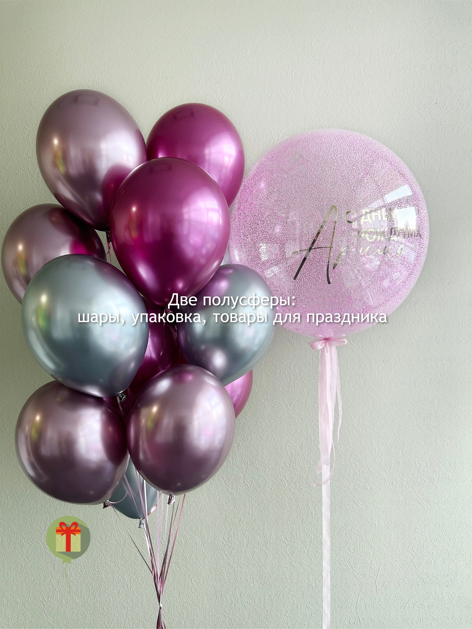 Шикарный фонтан из 13 шаров хром и сфера с пенопластом 60 см+ надпись. Грузики и пакеты включены в стоимость.