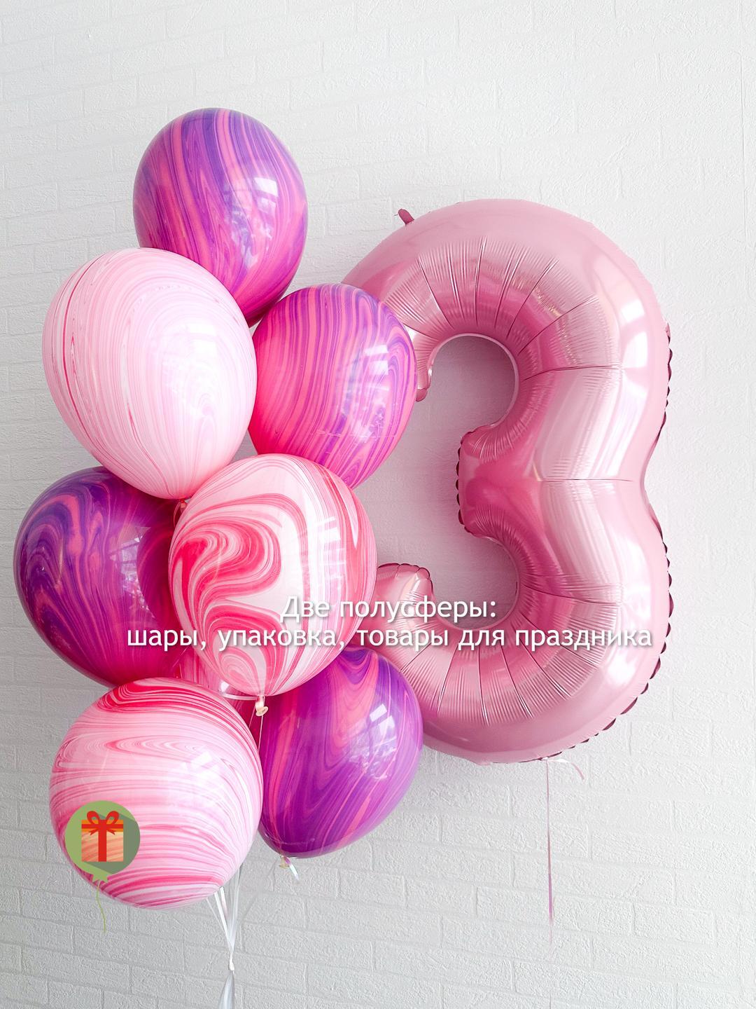 Фонтан из 10 шаров агат и фольгированная цифра 102 см. Грузики и пакеты включены в стоимость.