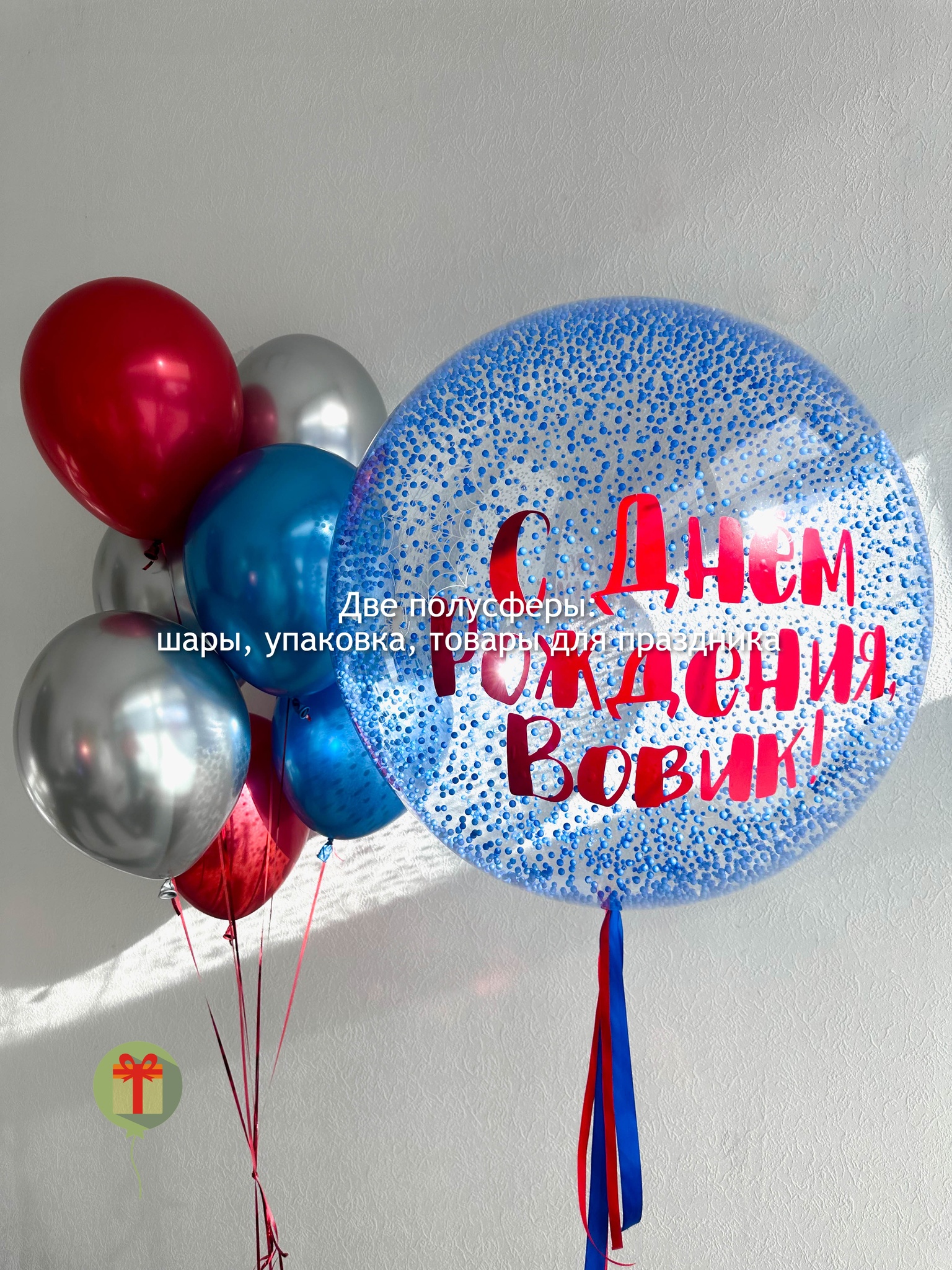 Сфера с пенопластом 60 см+ наклейка и фонтан из 7 шаров хром. Грузики и пакеты включены в стоимость.