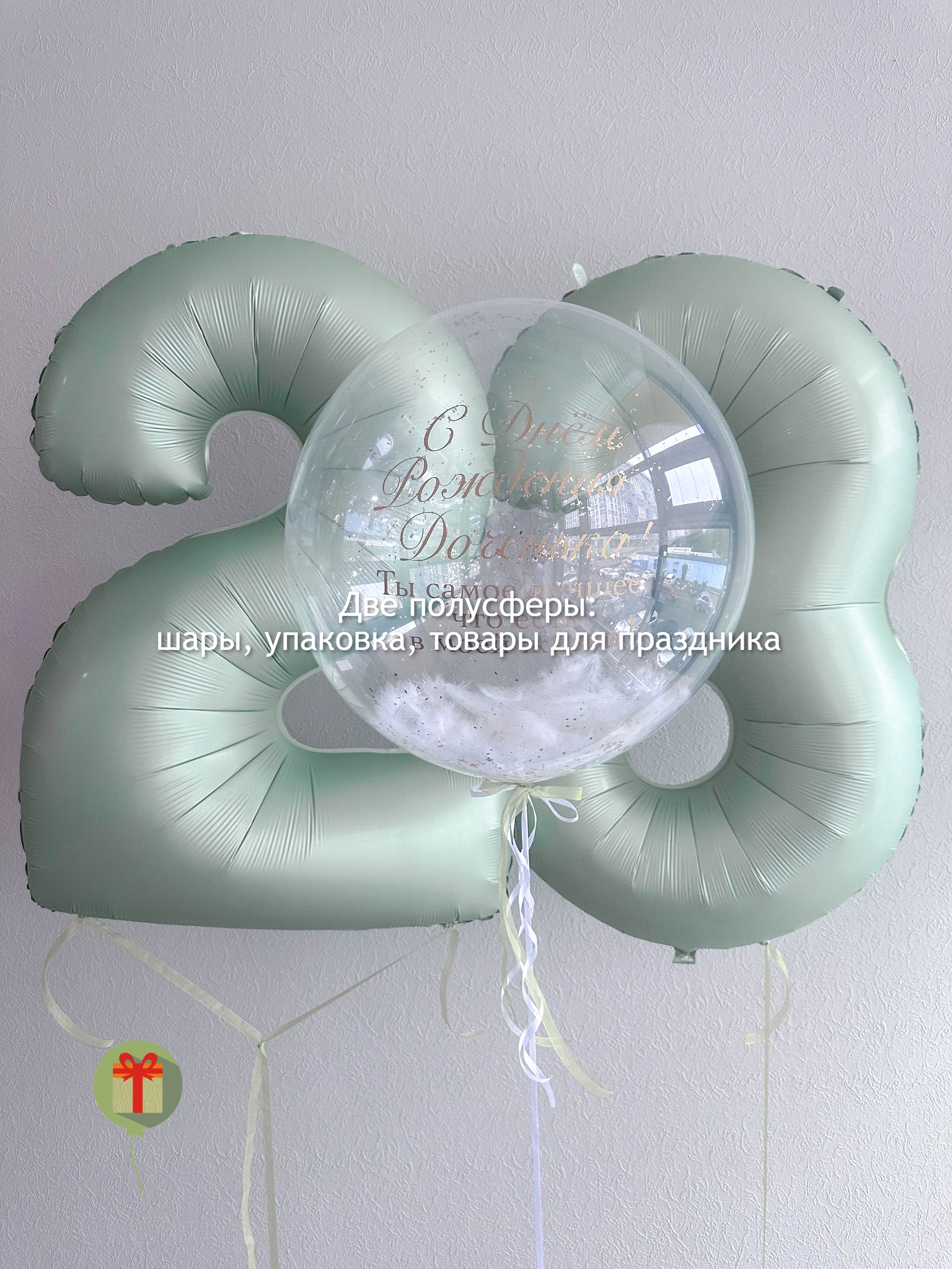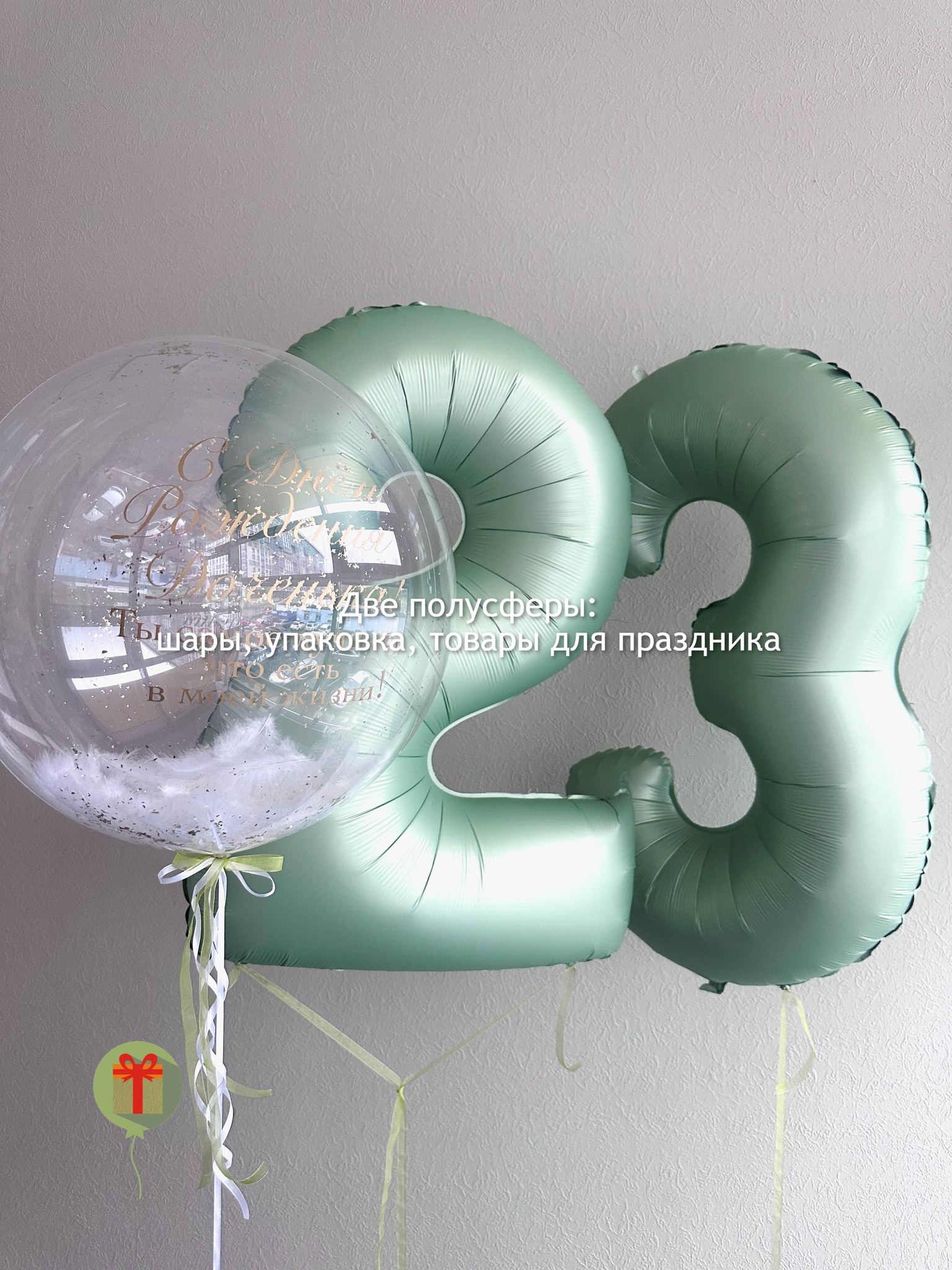 Сфера с перьями 60 см+ надпись и 2 фольгированные цифры 102 см. Грузики и пакеты включены в стоимость.