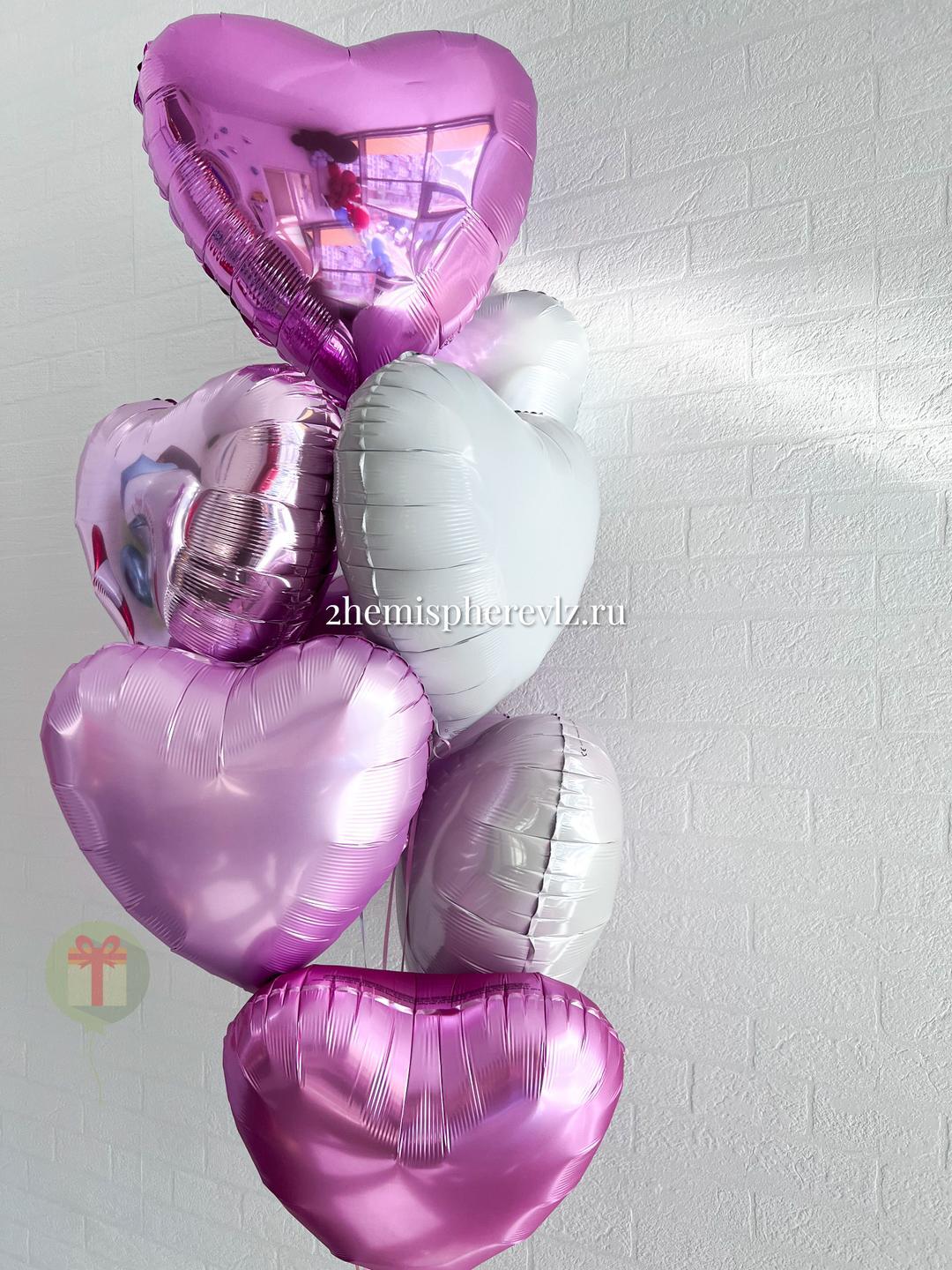 Большой и пышный набор из фольгированных сердец 45 см ( 9 штук) и цифры 102 см. Сочетание цветов и шары идеально подойдут для стильной вечеринки. Грузики и пакеты входят в стоимость