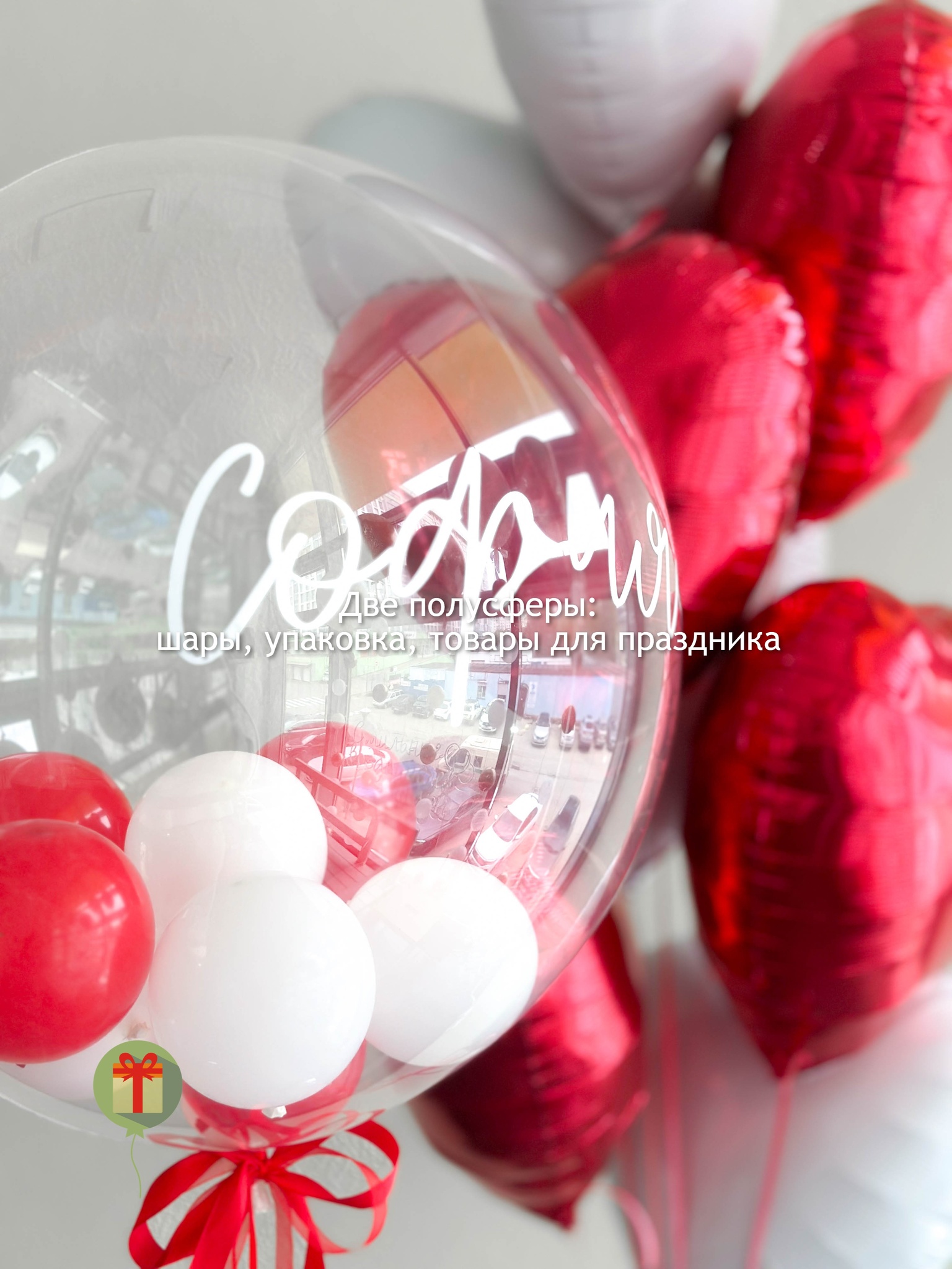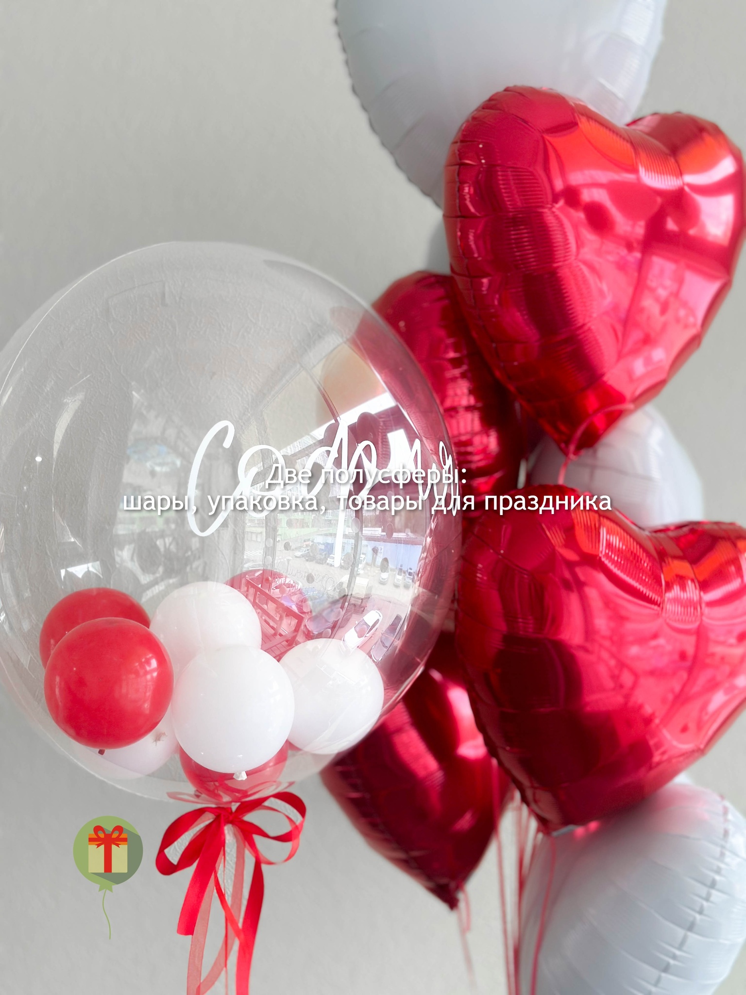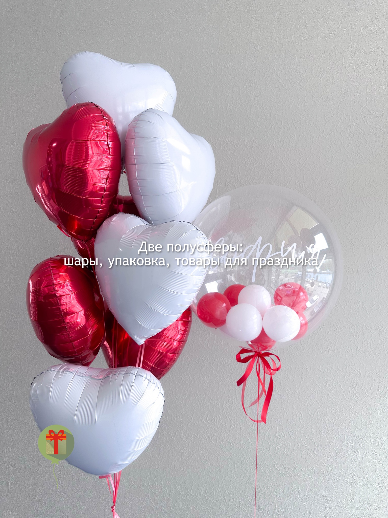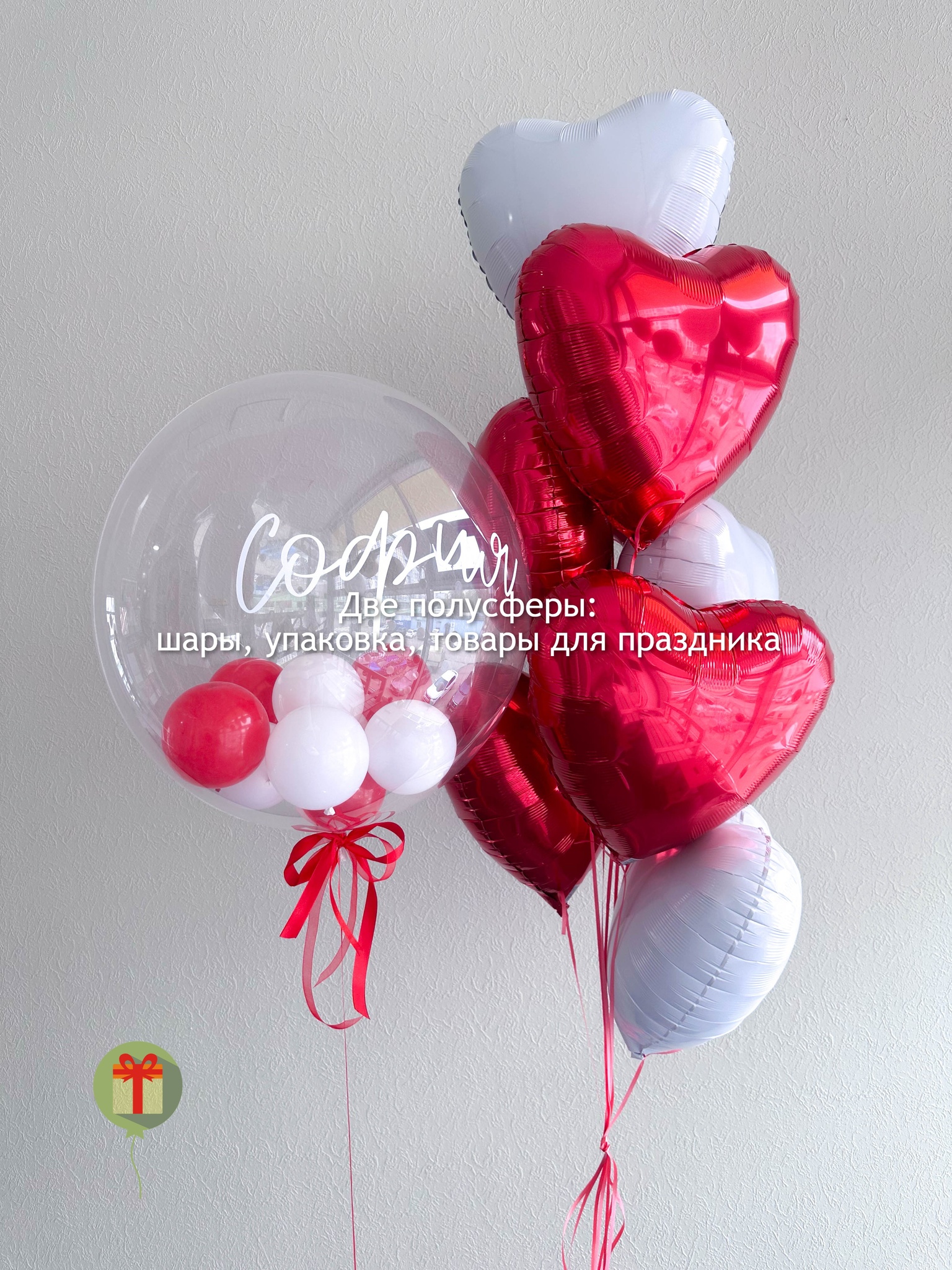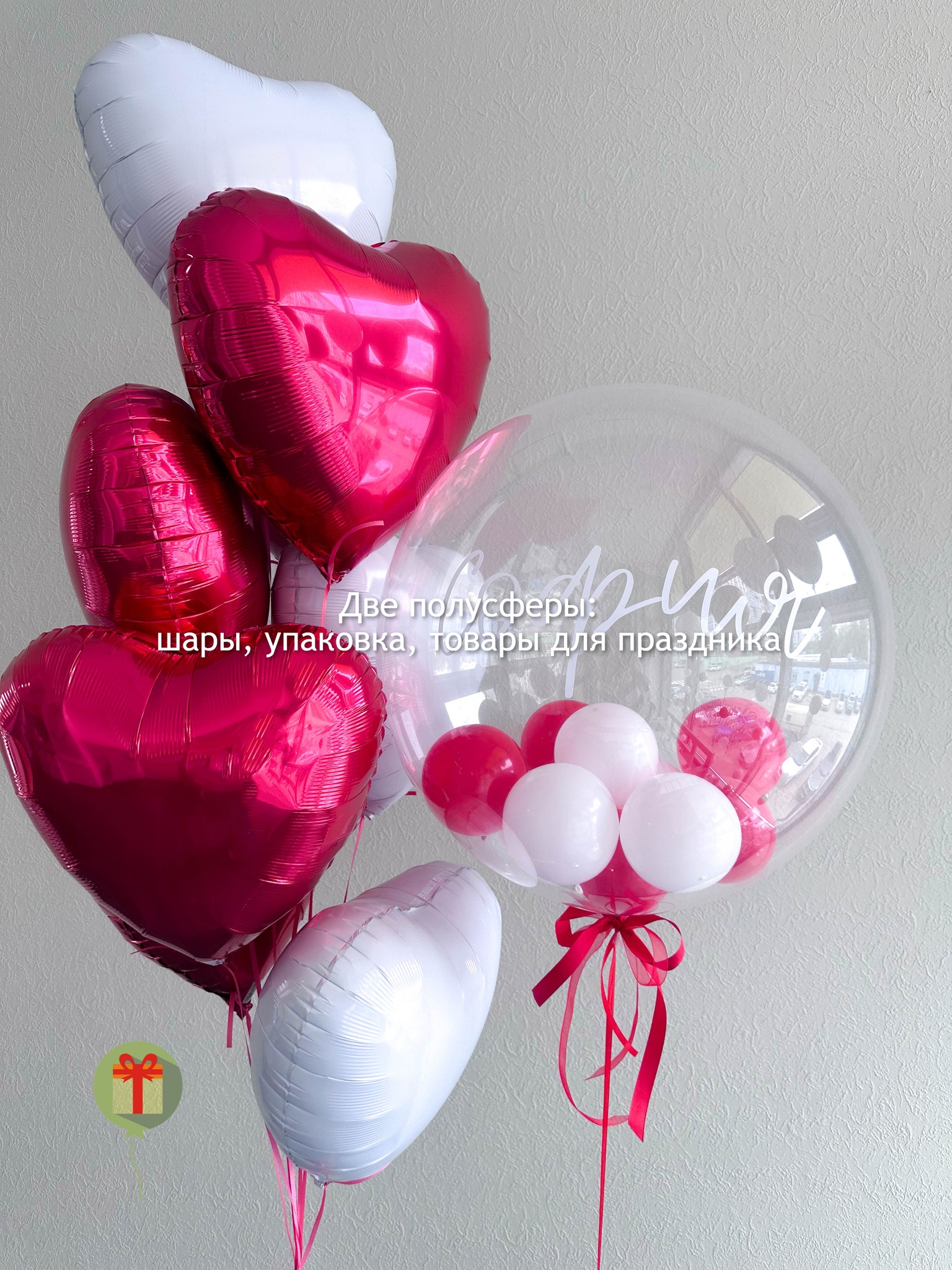 Сфера 60 см+ надпись и фонтан из 7 фольгированных сердец 45 см. Грузики и пакеты включены в стоимость.
