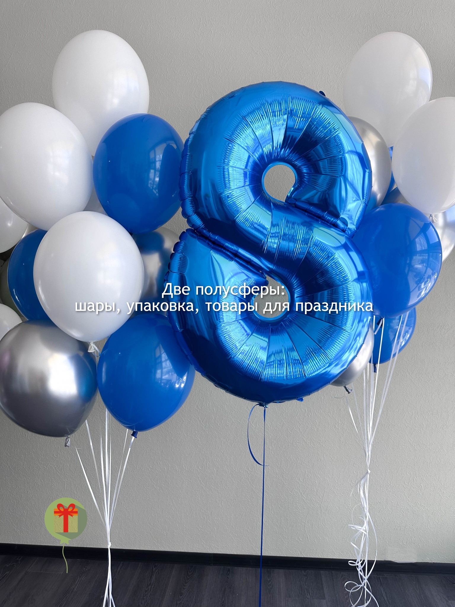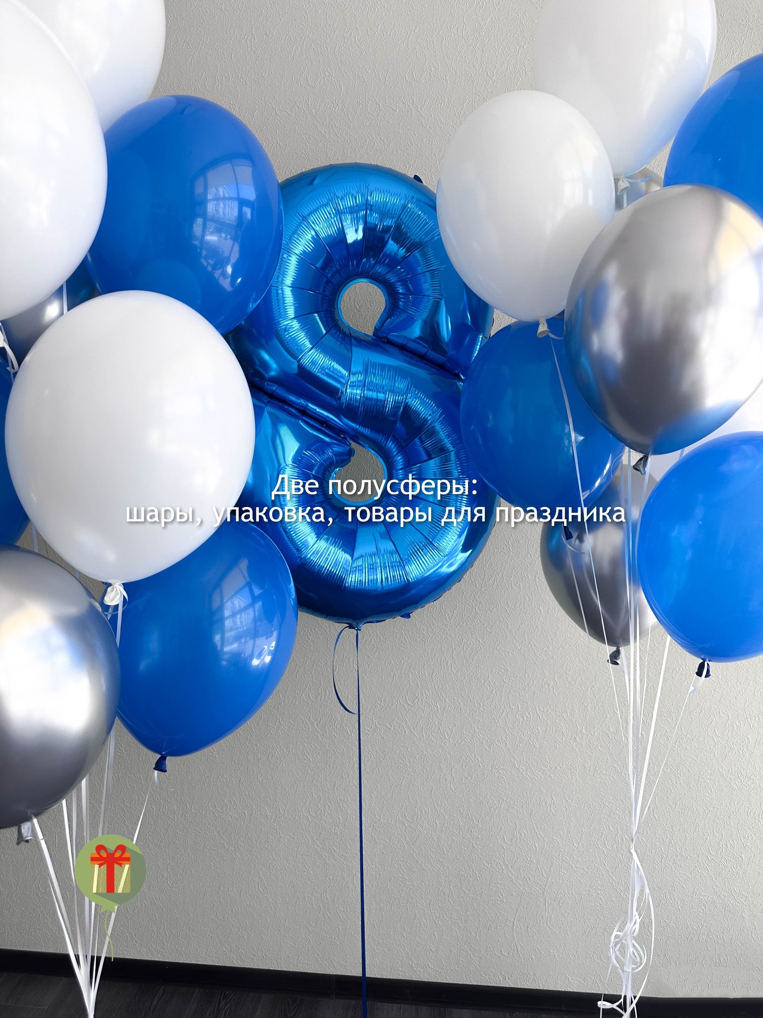 Фольгированная цифра 102 см и 2 фонтана по 10 штук: 3 шара хром и 7 шаров пастель. Грузики и пакеты включены в стоимость.