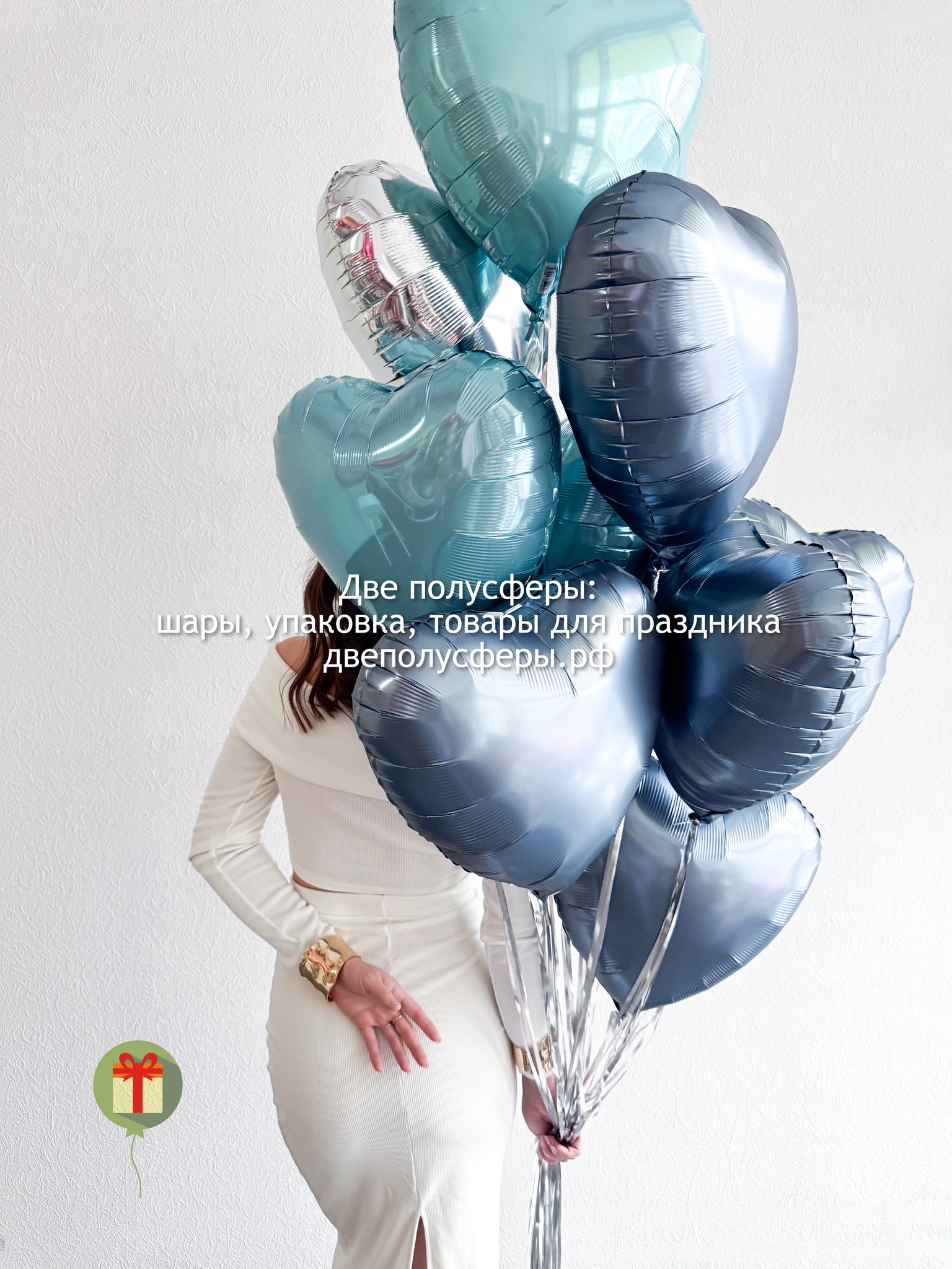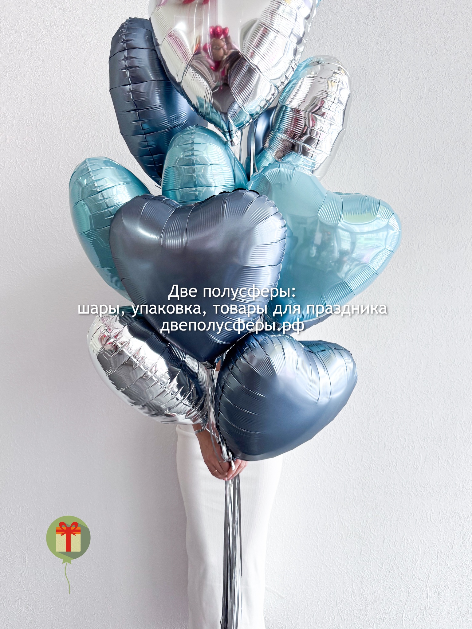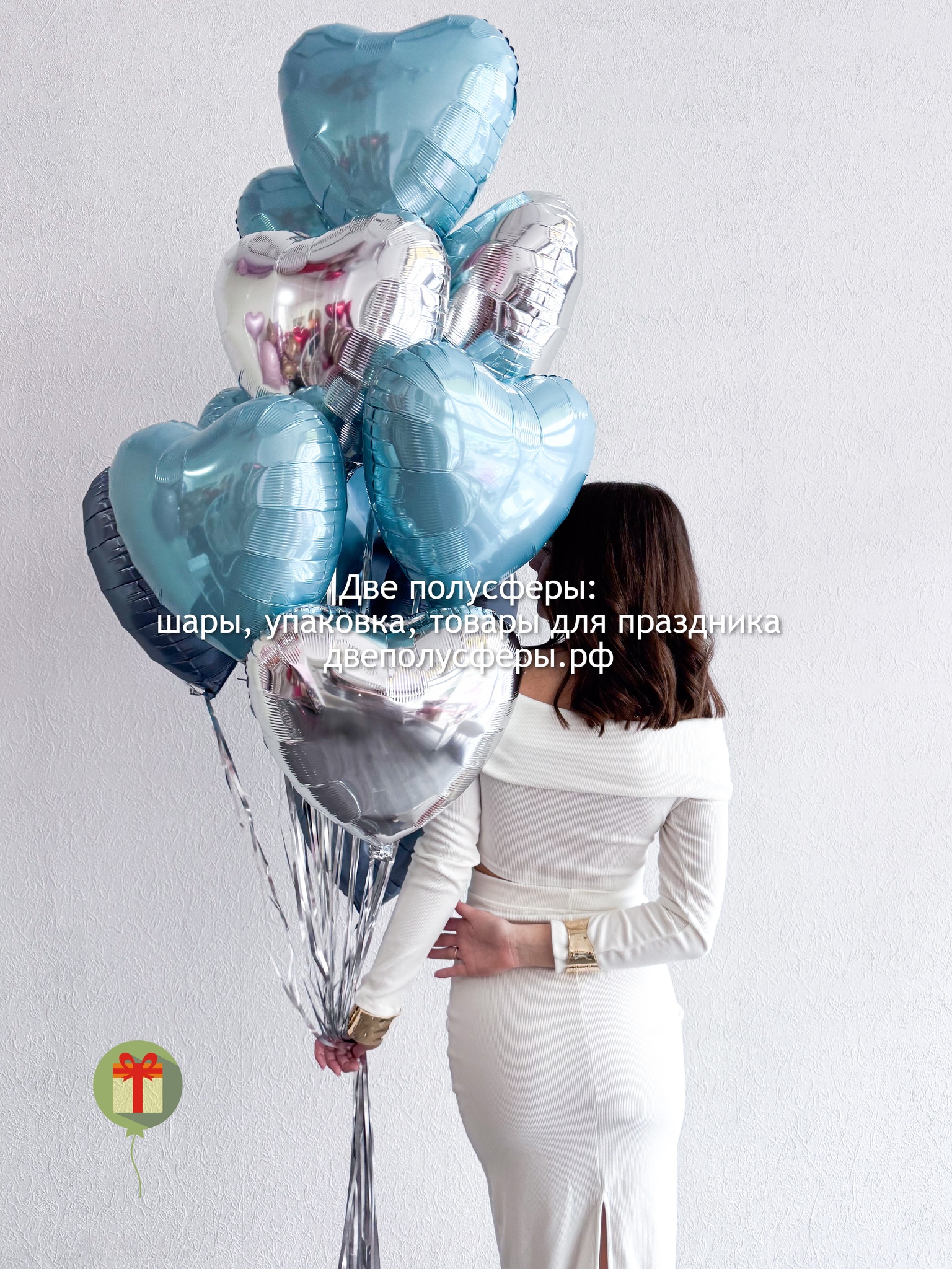 Фонтан из 10 фольгированных сердец 45, грузик и пакет входят в стоимость.