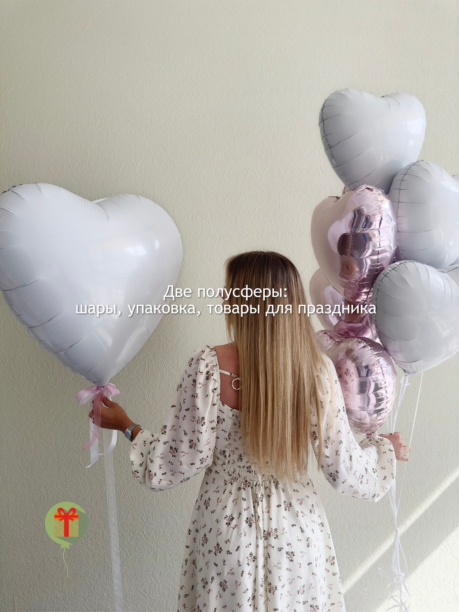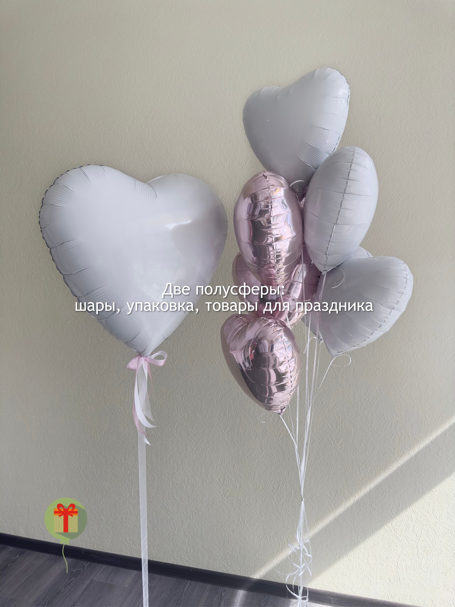 Фольгированное сердце 60 см и фонтан из 7 сердец 45 см. Грузики и пакеты включены в стоимость.