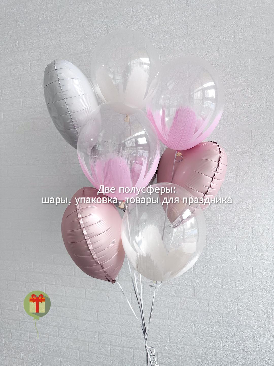 Нежный фонтан из 9 шаров для девушки: 4 фольгированных сердца 45 см и 5 шаров браш. Грузики и пакеты включены в стоимость.