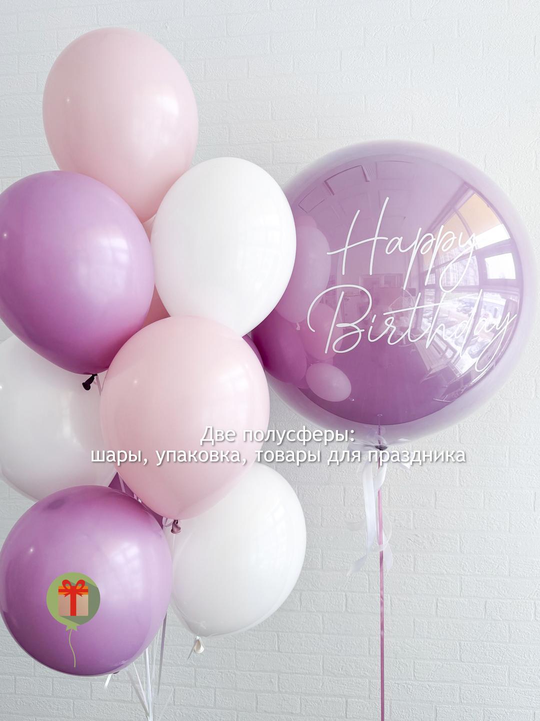 Фонтан из 10 шаров пастель и сфера дабл бабл 60 см с надписью. Грузики и пакеты включены в стоимость.