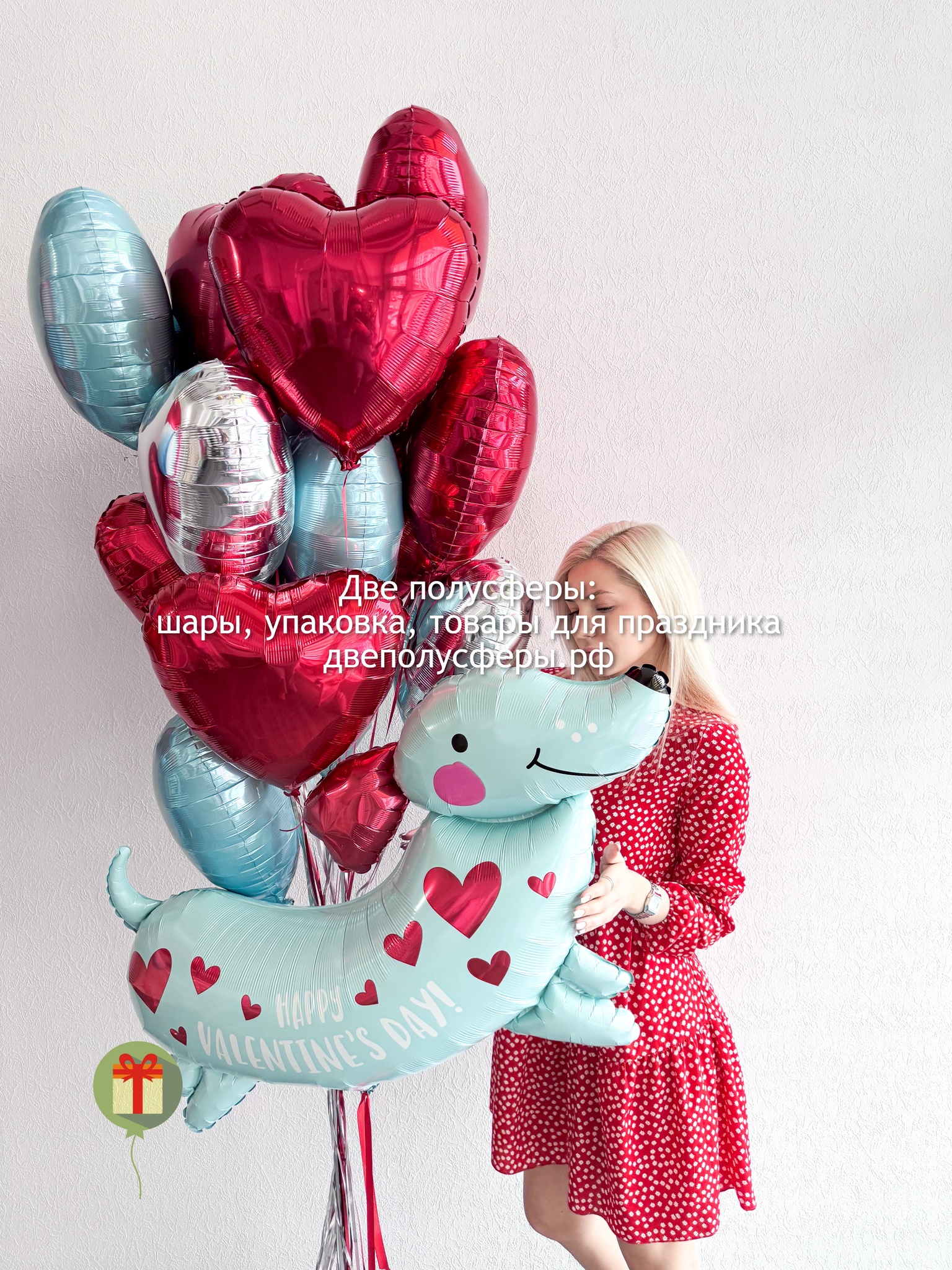 Набор с фольгированной фигуркой и фонтаном из 15 фольгированных сердец 45 см, грузик и пакет входят в стоимость.