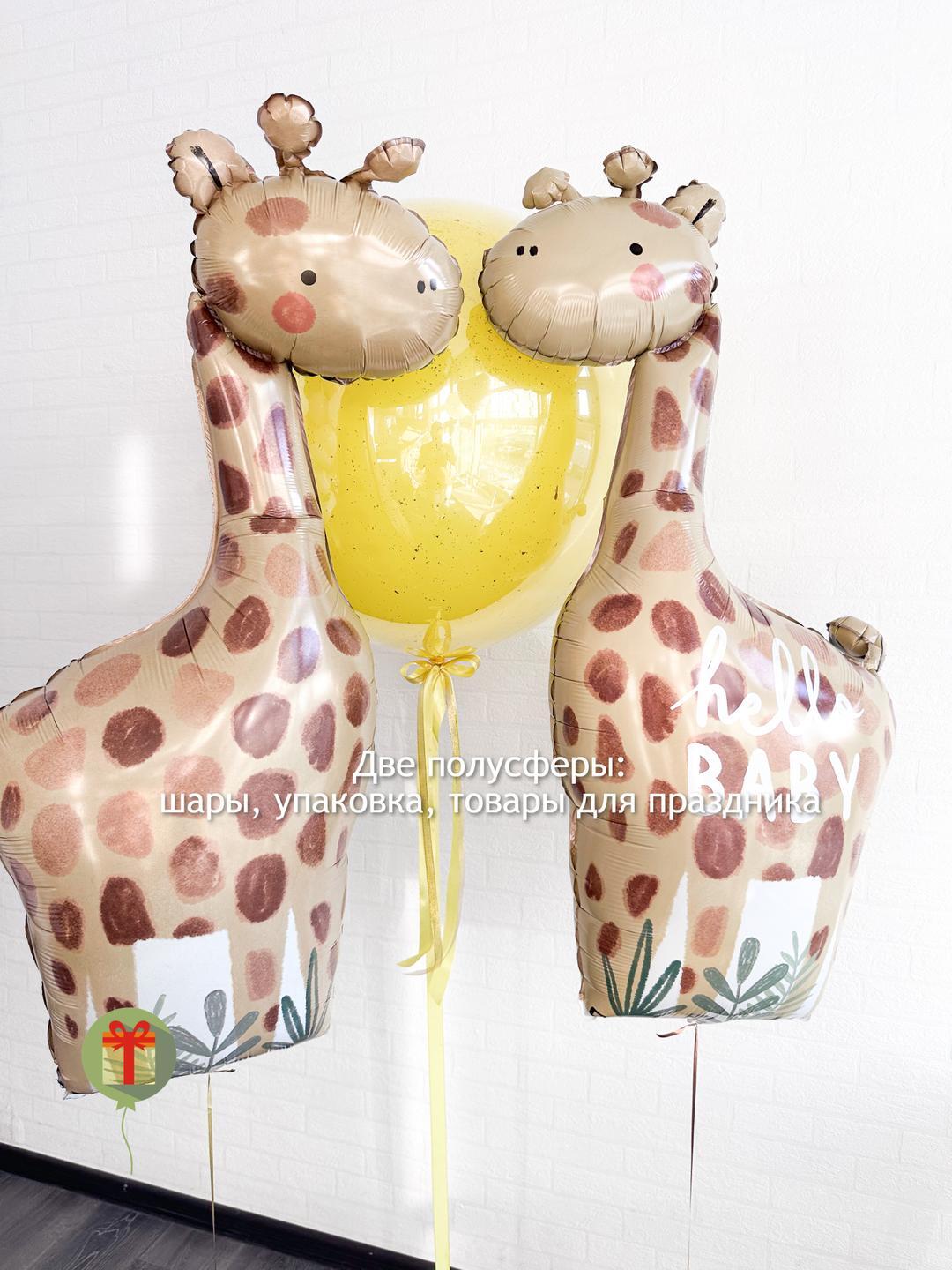 Милый наборчик из 2 фольгированных фигур и сферы дабл бабл 60 см с конфетти+ надпись. Грузики и пакеты включены в стоимость.