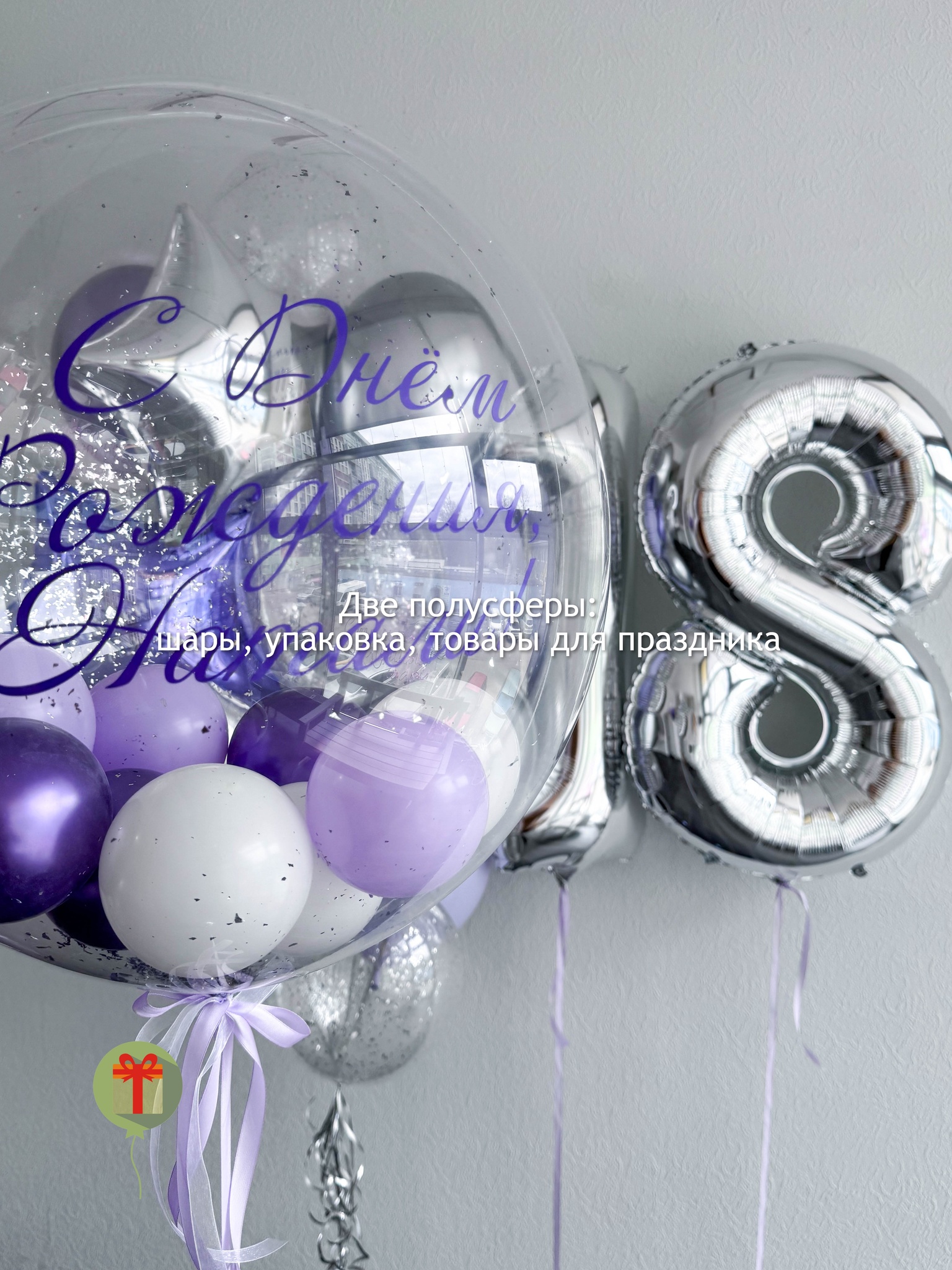 Пышный фонтан из 15 штук: 3 звезды 45 см+ надписи, 3 шара с конфетти, 4 шара хром и 5 шаров пастель, а так же 2 фольгированные цифры 102 см и сфера 60 см с шарами внутри+ надпись. Грузики и пакеты включены в стоимость.