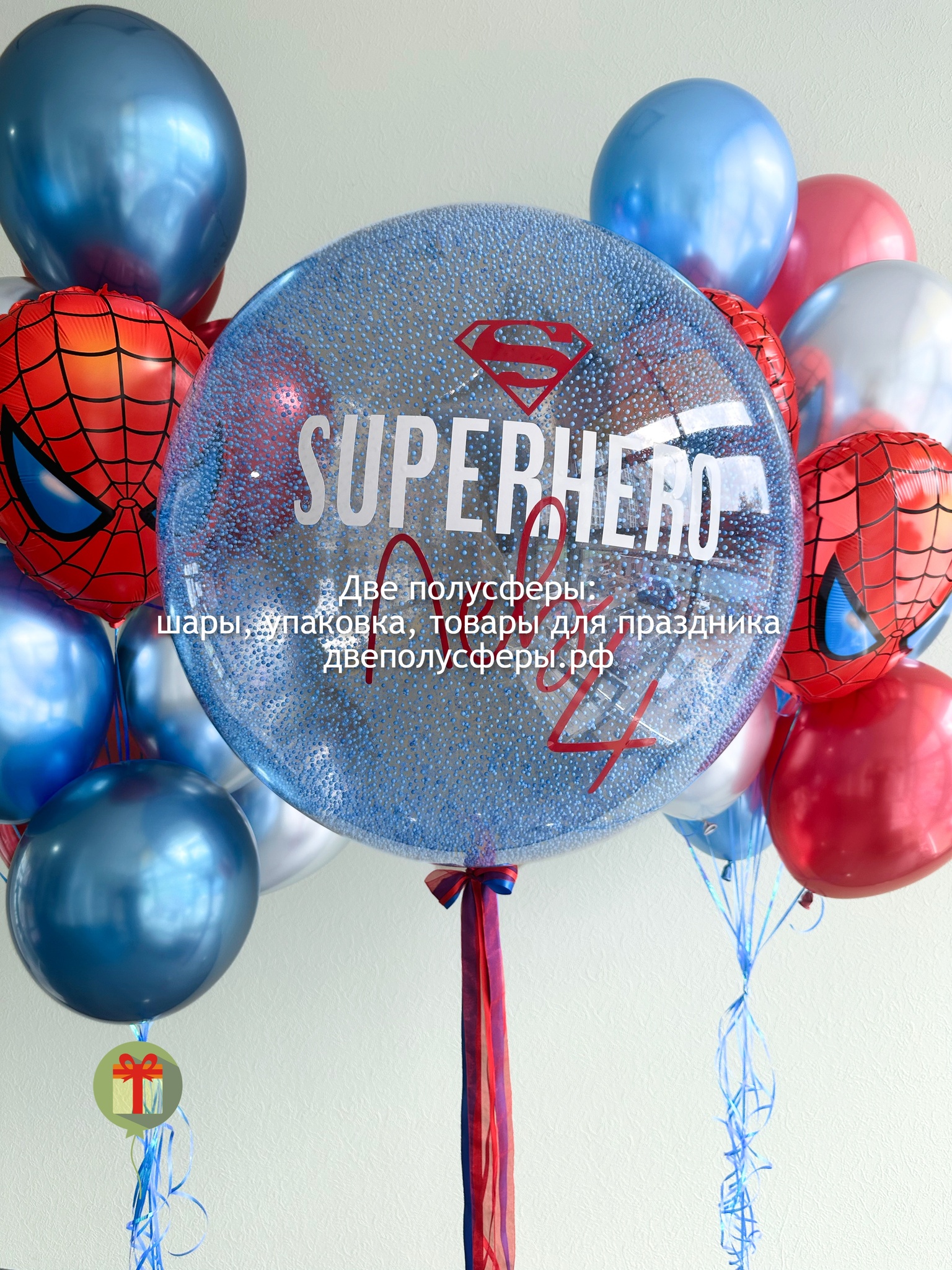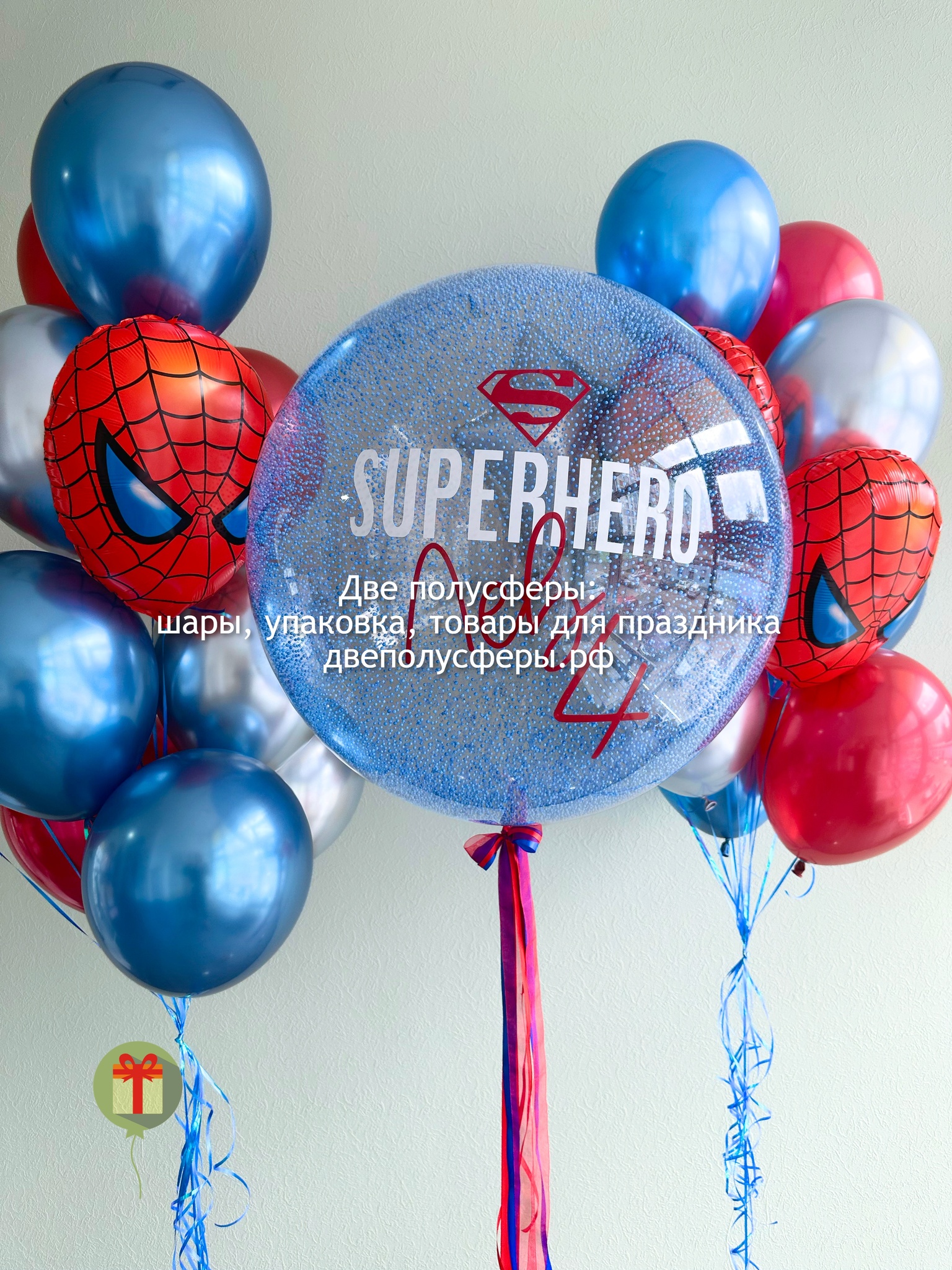 Сфера 60 см с пенопластом+ надпись и 2 фонтана по 10 штук: 2 фигуры 45 см, звезда 45 см и 7 шаров хром. Грузики и пакеты включены в стоимость.