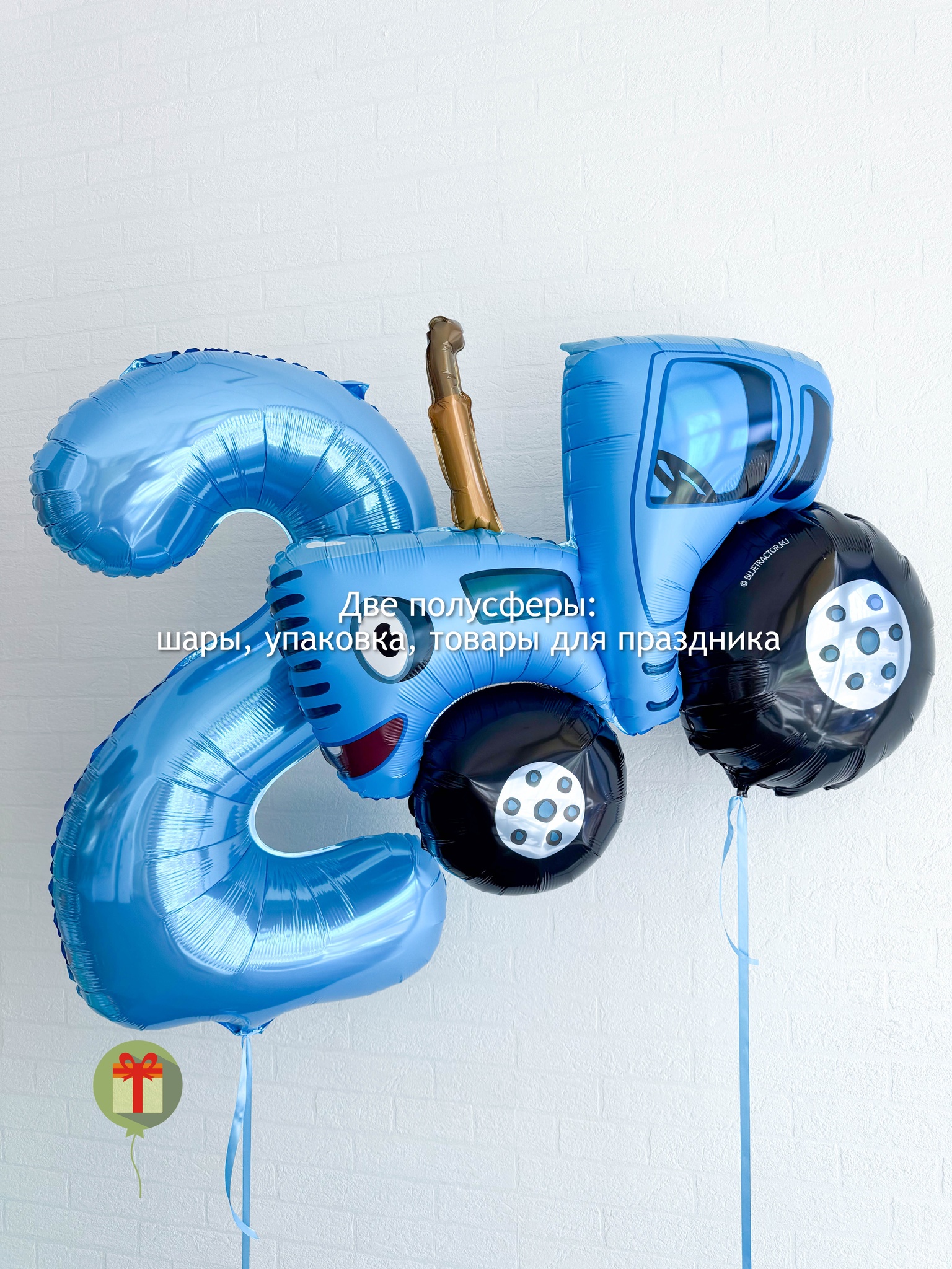 Фольгированная цифра 102 см и фигурка трактора. Грузики и пакеты включены в стоимость.