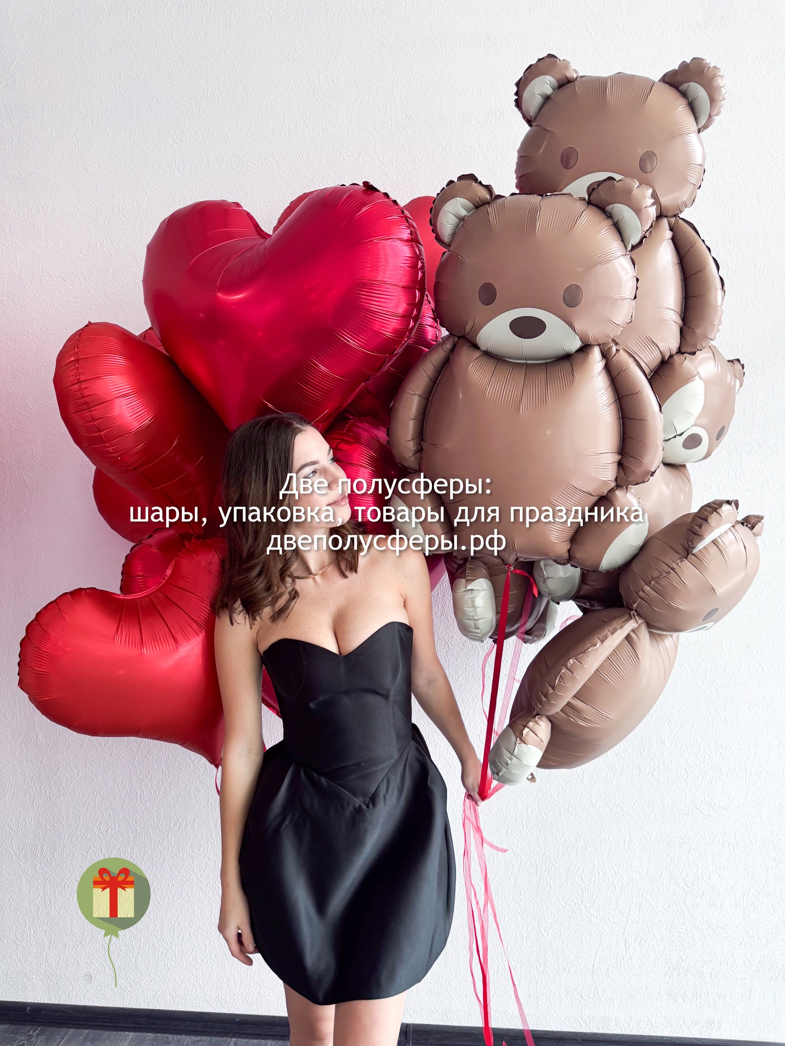 Набор из 4 и фольгированных мишек и 5 шаров фольгированных сердец, грузик и пакет входят в стоимость.