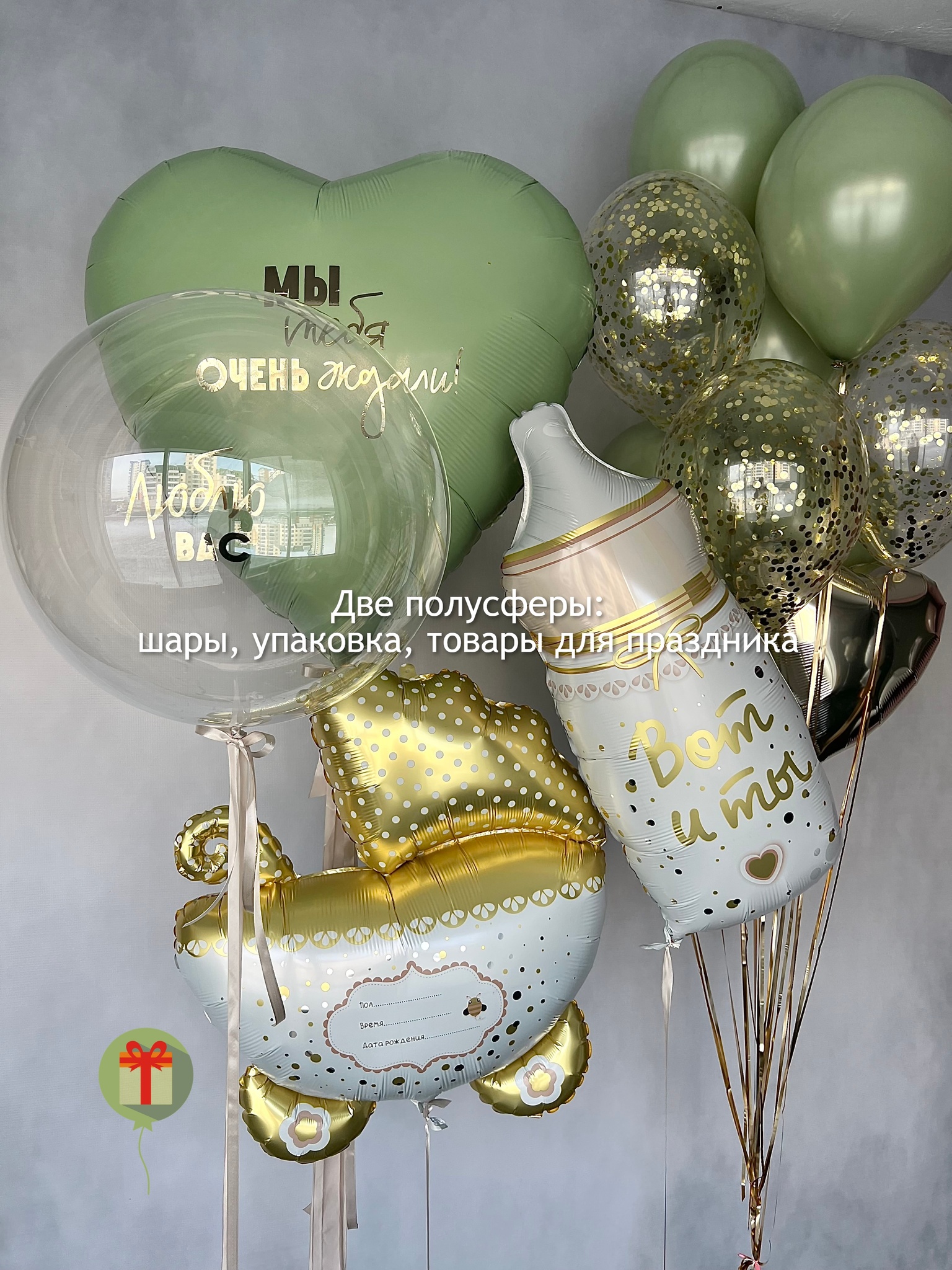 Фольгированное сердце 60 см+ надпись, сфера 60 см+ надпись, 2 фигуры и фонтан из 10 штук: 3 шара с конфетти, 1 фольгированное сердце 45 см и 6 шаров пастель. Грузики и пакеты включены в стоимость.