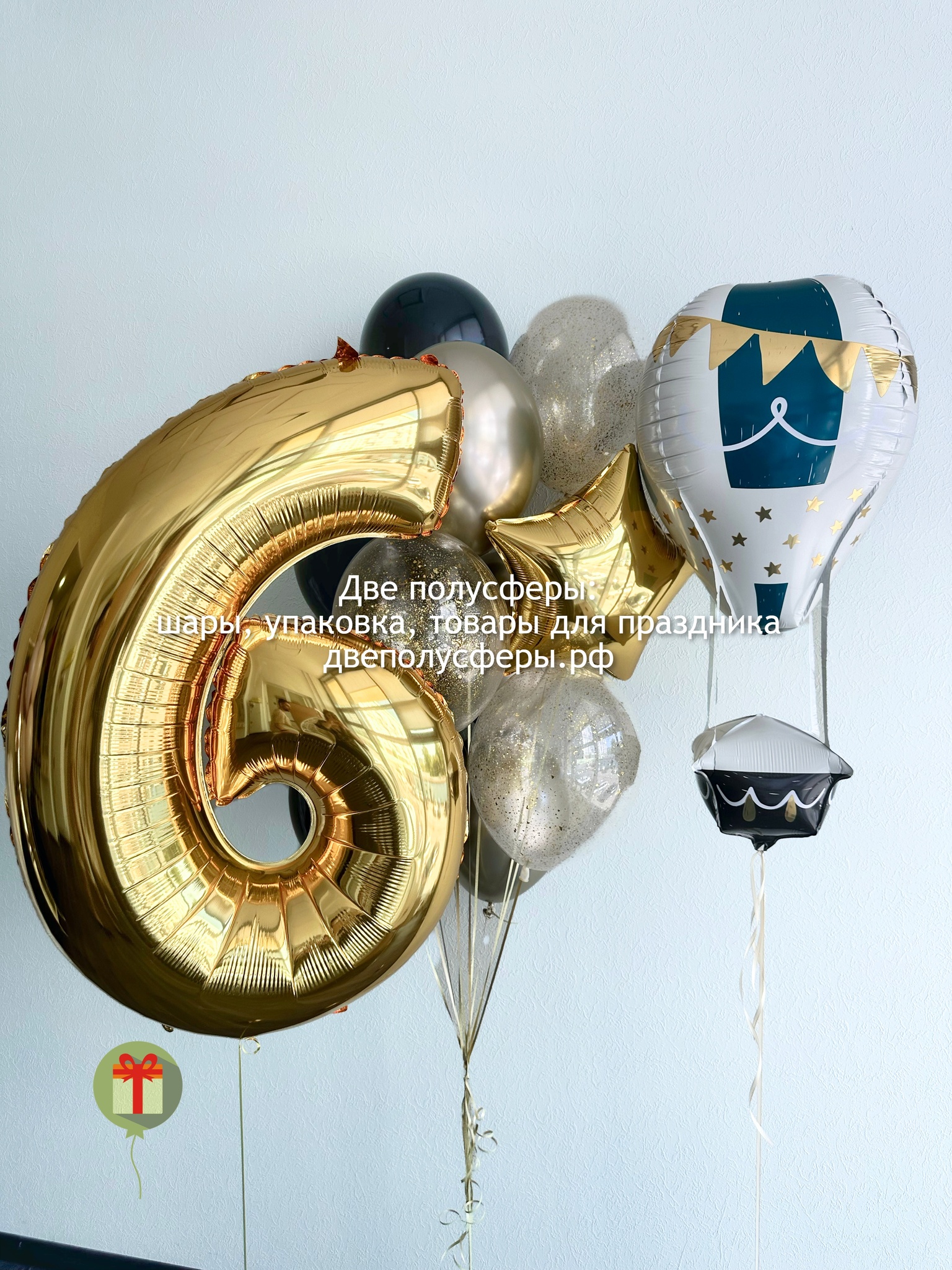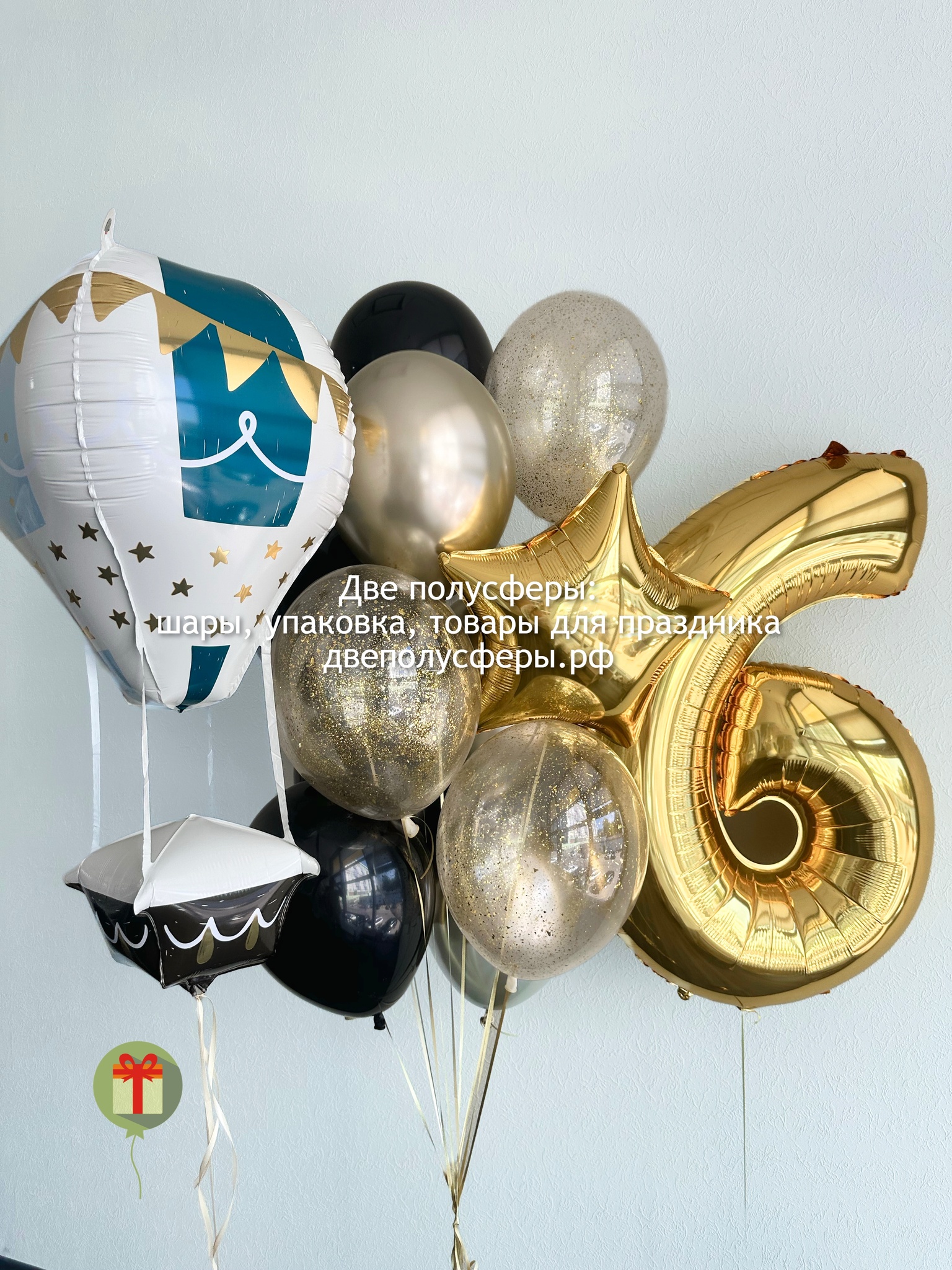 Фонтан из 11 штук: звезда 45 см, 3 шара с конфетти, 3 шара хром и 4 шара пастель; а так же цифра 102 см и фигура воздушного шара. Грузики и пакеты включены в стоимость.