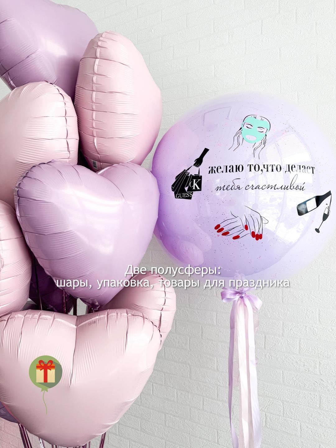 Фонтан из 11 фольгированных сердец 45 см и сфера дабл бабл 60 см с надписью. Грузики и пакеты включены в стоимость.