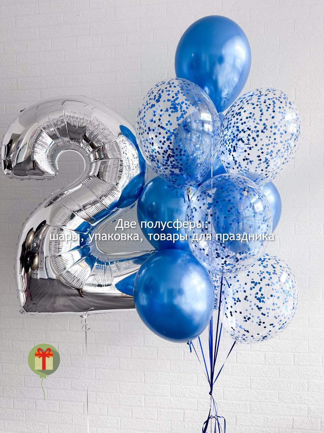 Милый набор в жемчужно-синих оттенках. В фонтане 10 штук: 4 шара с конфетти и 6 шаров хром; а так же, фольгированная цифра 102 см. Грузики и пакеты включены в стоимость.