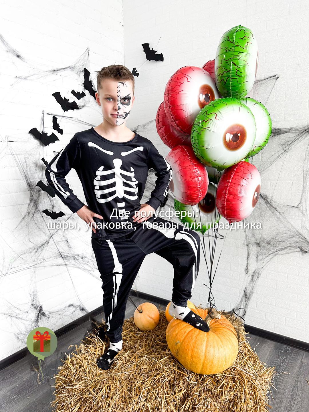 Большой красивый и яркий набор, состоящий из фигуры зомби из Pants vs. Zombie и фонтана из 10 фольгированных шаров в виде глаза, грузики и пакеты входят в стоимость