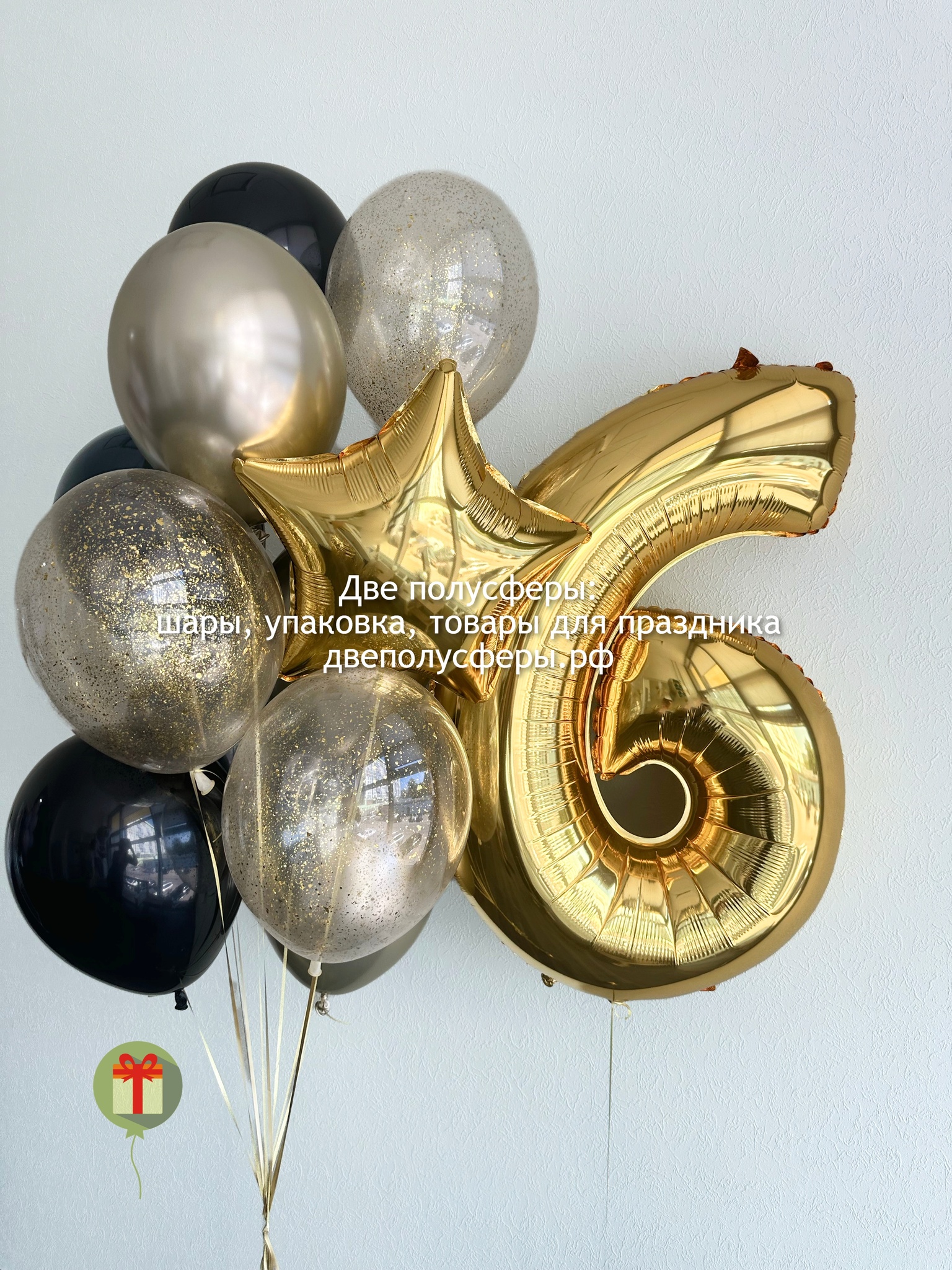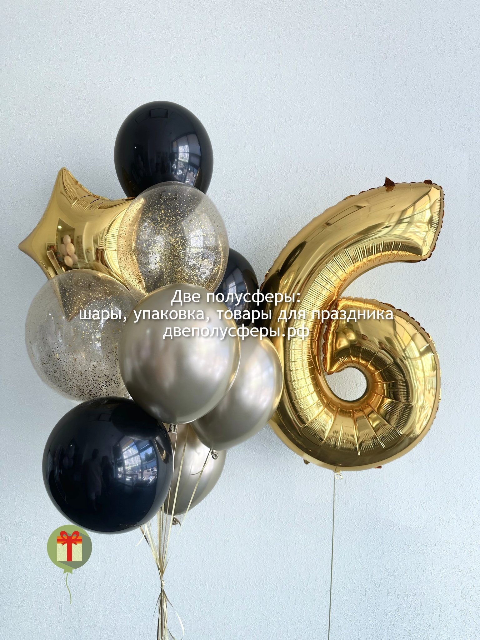 Фонтан из 11 штук: звезда 45 см, 3 шара с конфетти, 3 шара хром и 4 шара пастель; а так же цифра 102 см. Грузики и пакеты включены в стоимость.