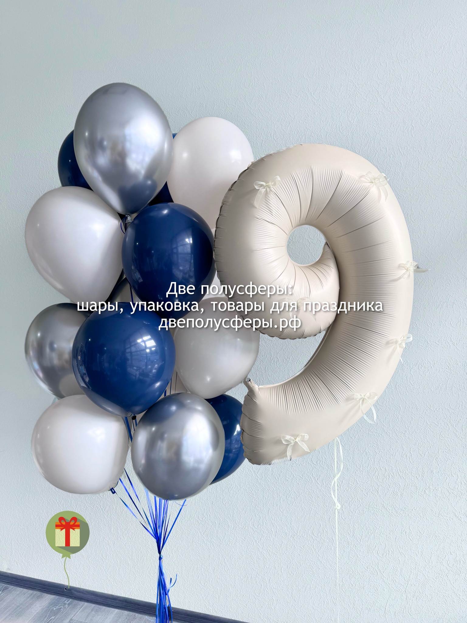 Набор с фольгированной цифрой 102 см и фонтаном из 13 шаров, 5 шаров хром и 10 шаров пастель, грузик и пакет входят в стоимость.