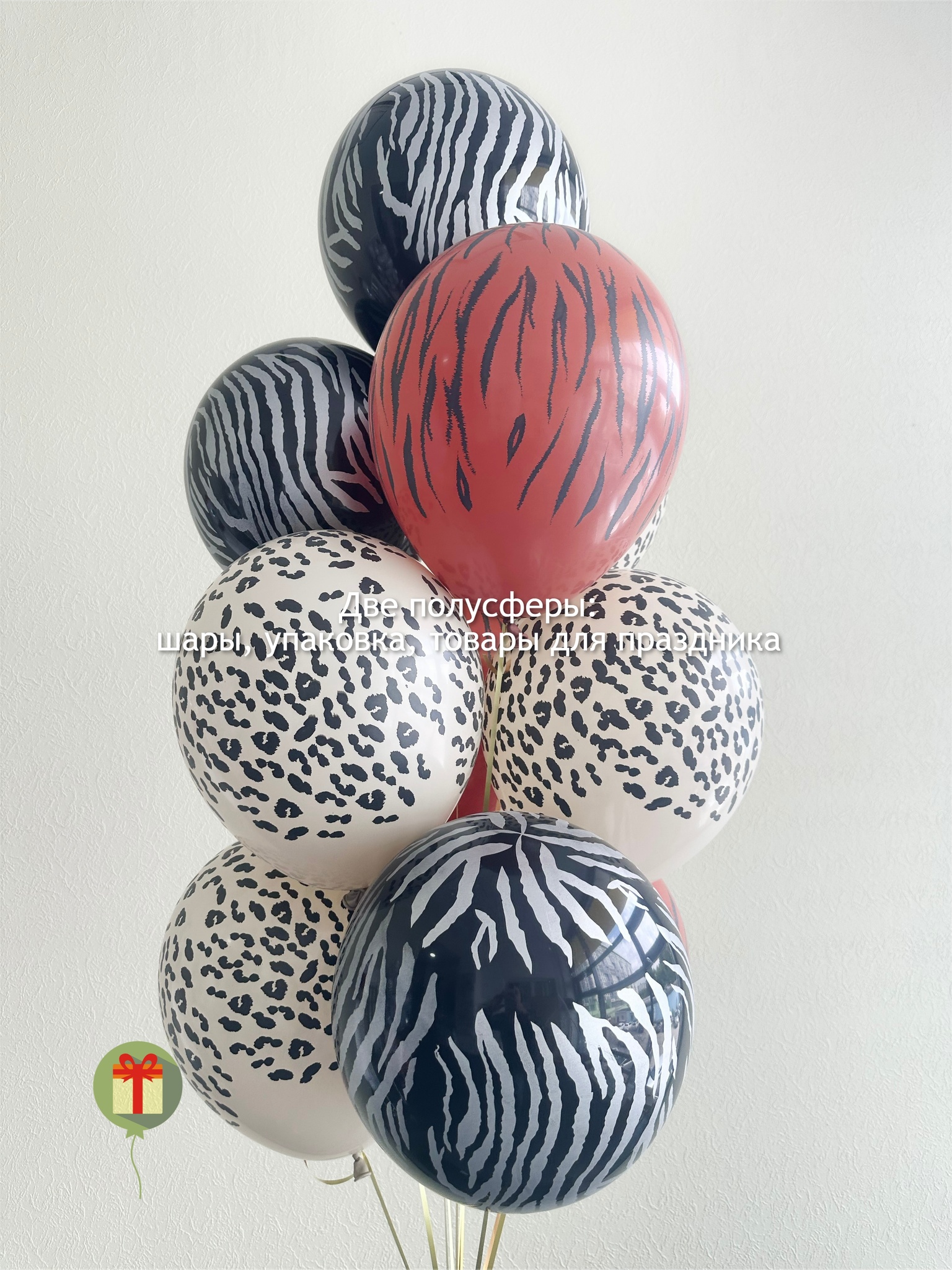Фонтан из 10 шаров с рисунком ф стиле сафари, грузик и пакет входят в стоимость