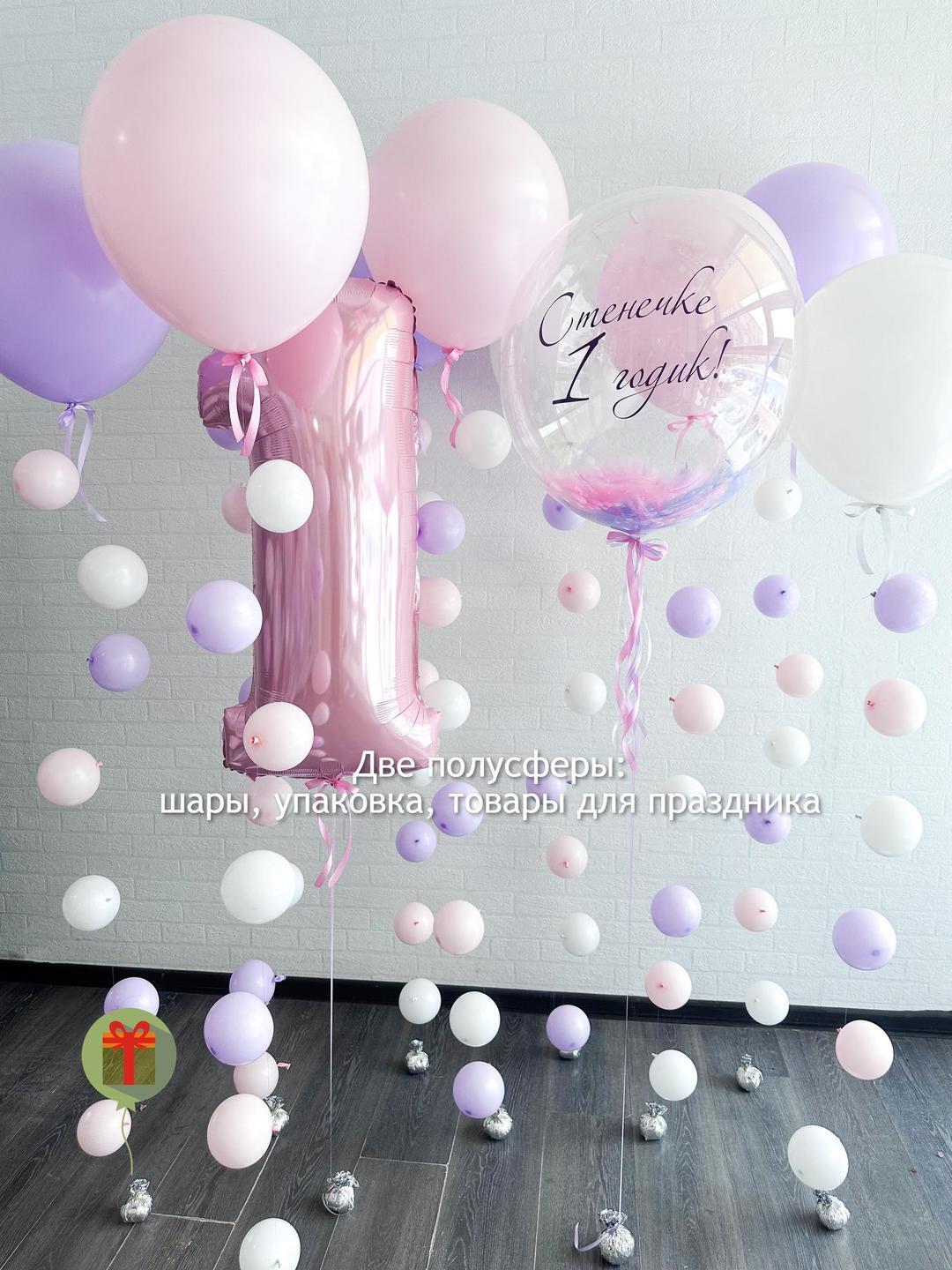 Фольгированная цифра 102 см, сфера 60 см с перьями+ надпись; 7 шаров пастель 45 см на цепочках из шаров. Грузики и пакеты включены в стоимость.