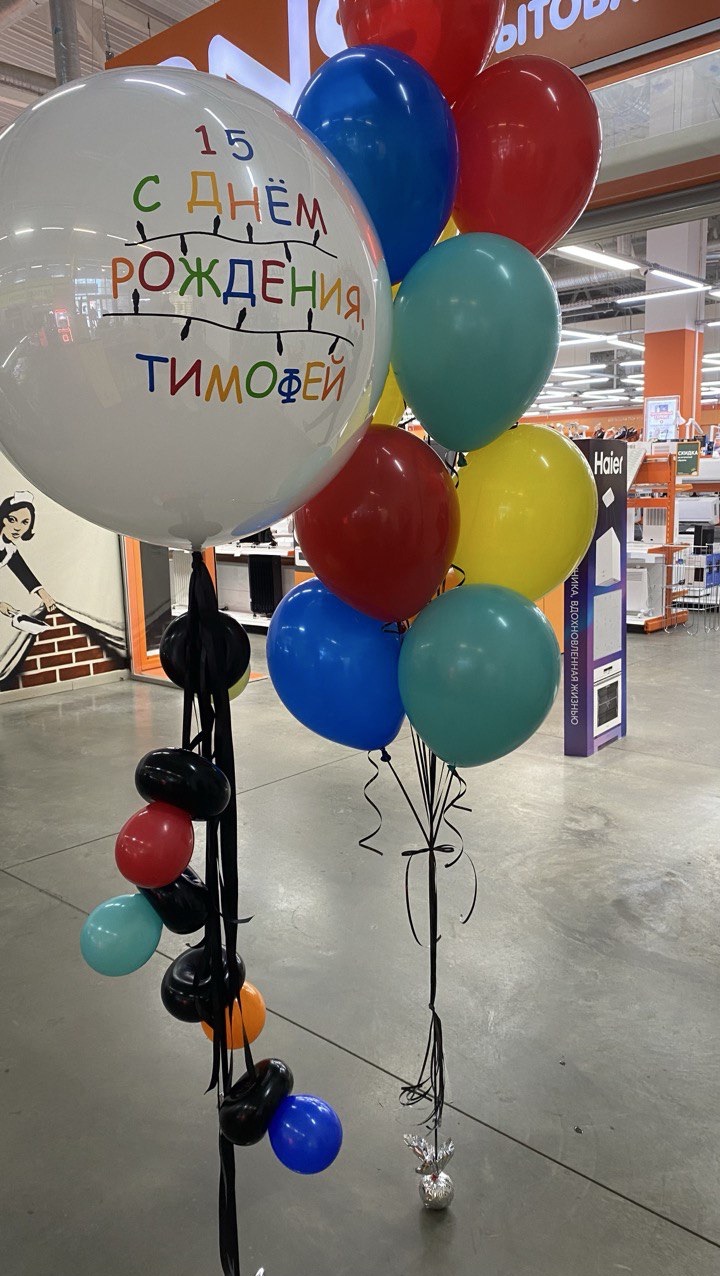 Стеклянный шар 60 см с именной надписью и лампочками, фонтан из 13 шаров, Грузики и пакеты входят в стоимость