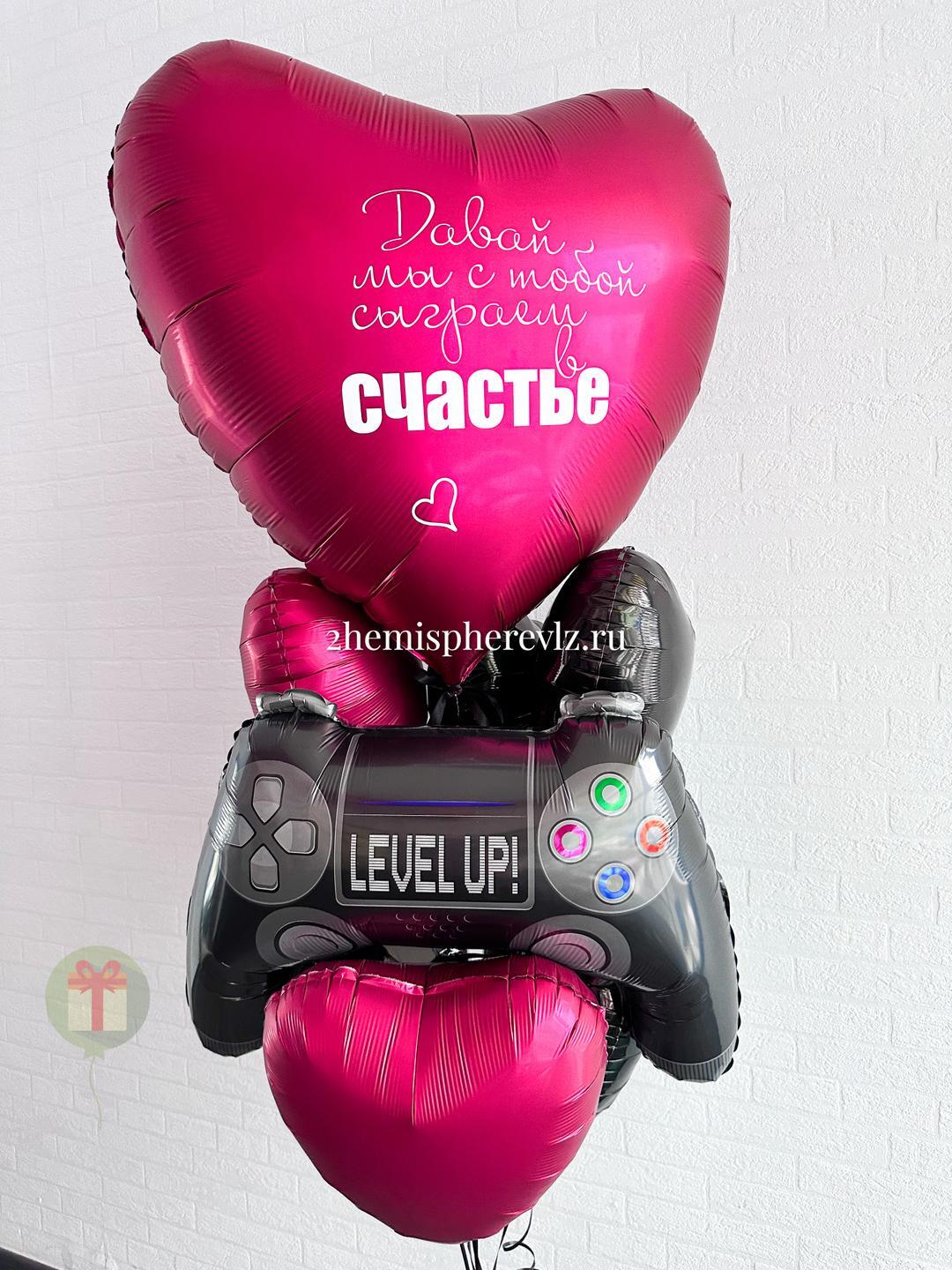 Состав набора: большое сердце 60 см с надписью, фигура фольгированная джойстик, 6 фольгированных сердец 45см, грузики и пакеты входят в стоимость