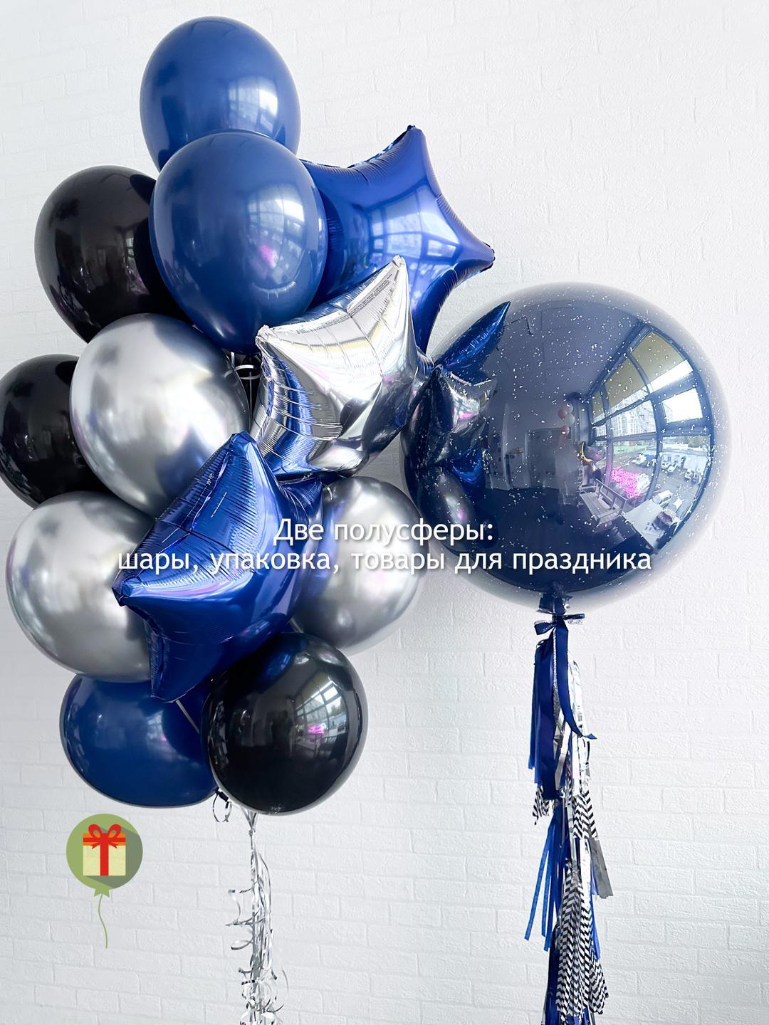 8 шаров пастель, 4 шара хром, 2 звезды 45 см, большой шар дабл бабл 60 см с пушистым хвостом, грузики, пакеты входят в стоимость