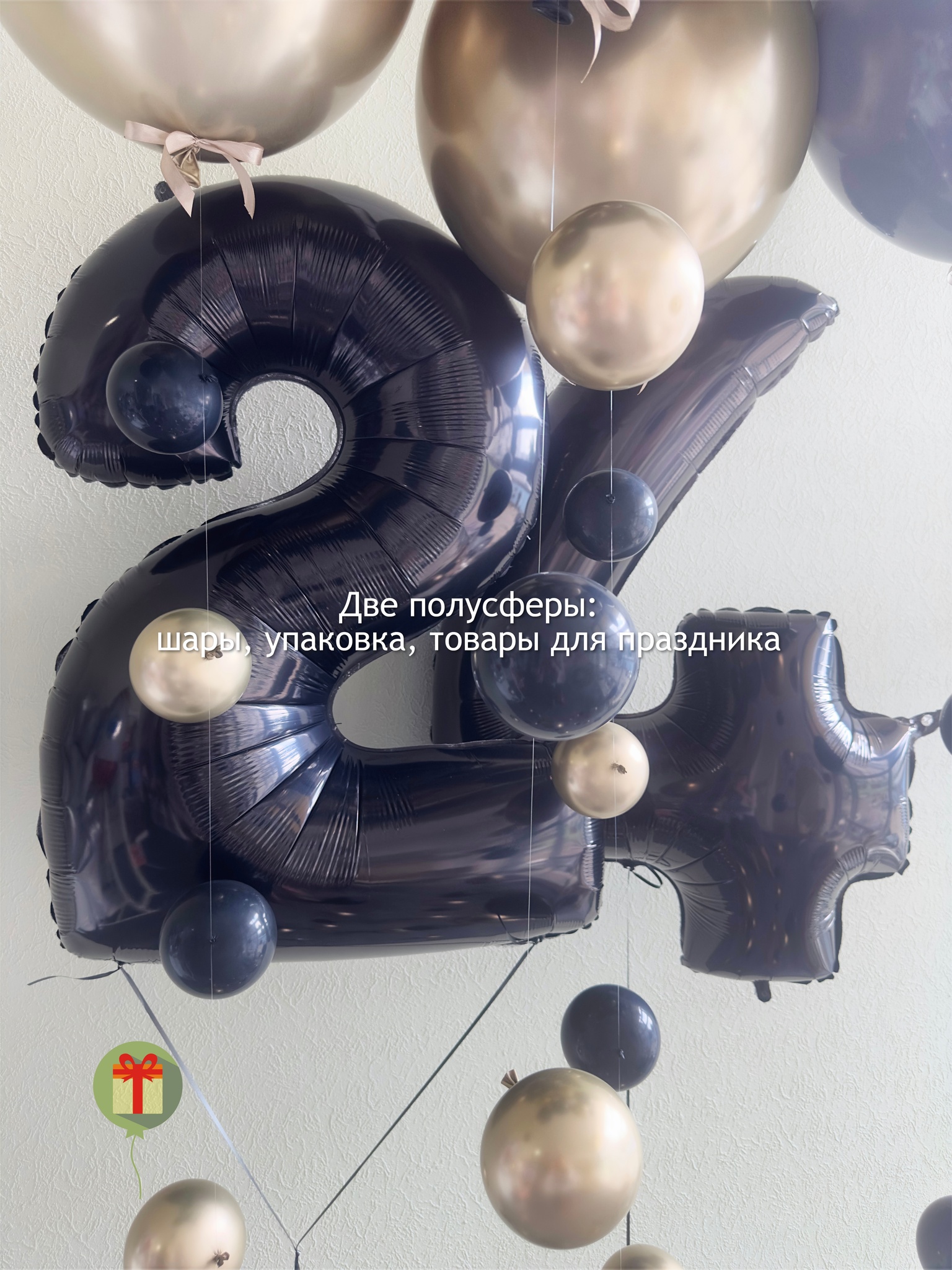 Фольгированные цифры 102 см и 6 шаров 45 см на цепочках, 3 шара хром и 3 шара пастель, грузик и пакет входят в стоимость.