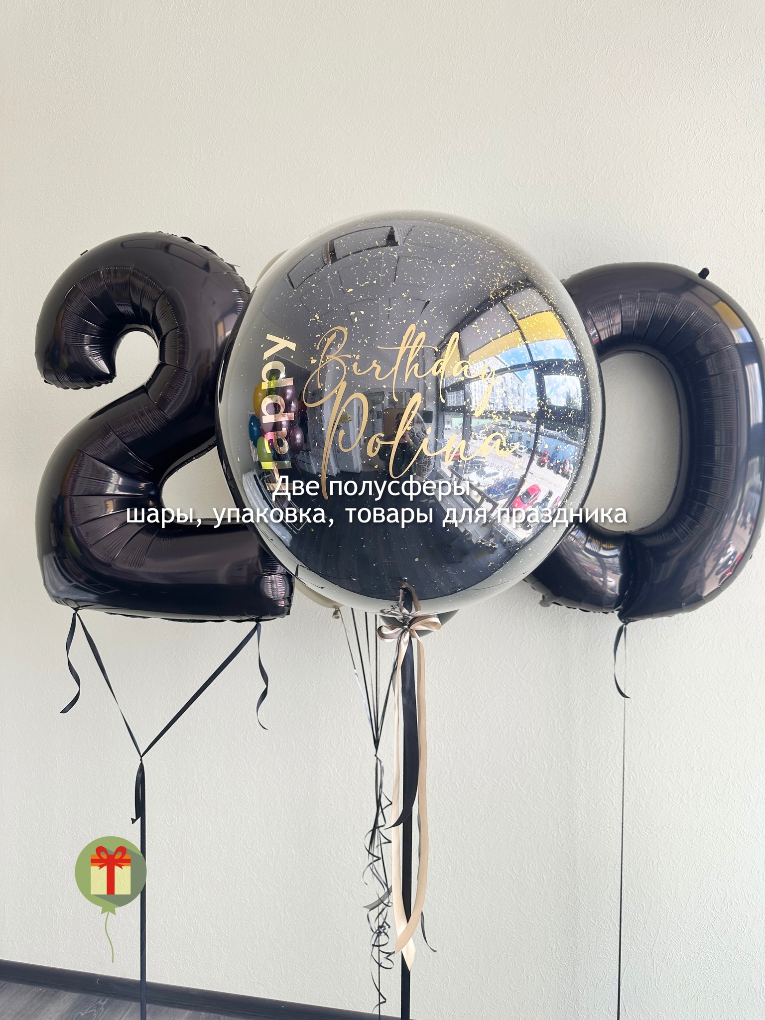 Сфера дабл бабл с конфетти 60 см+ надпись и 2 фольгированные цифры 102 см. Грузики и пакеты включены в стоимость.