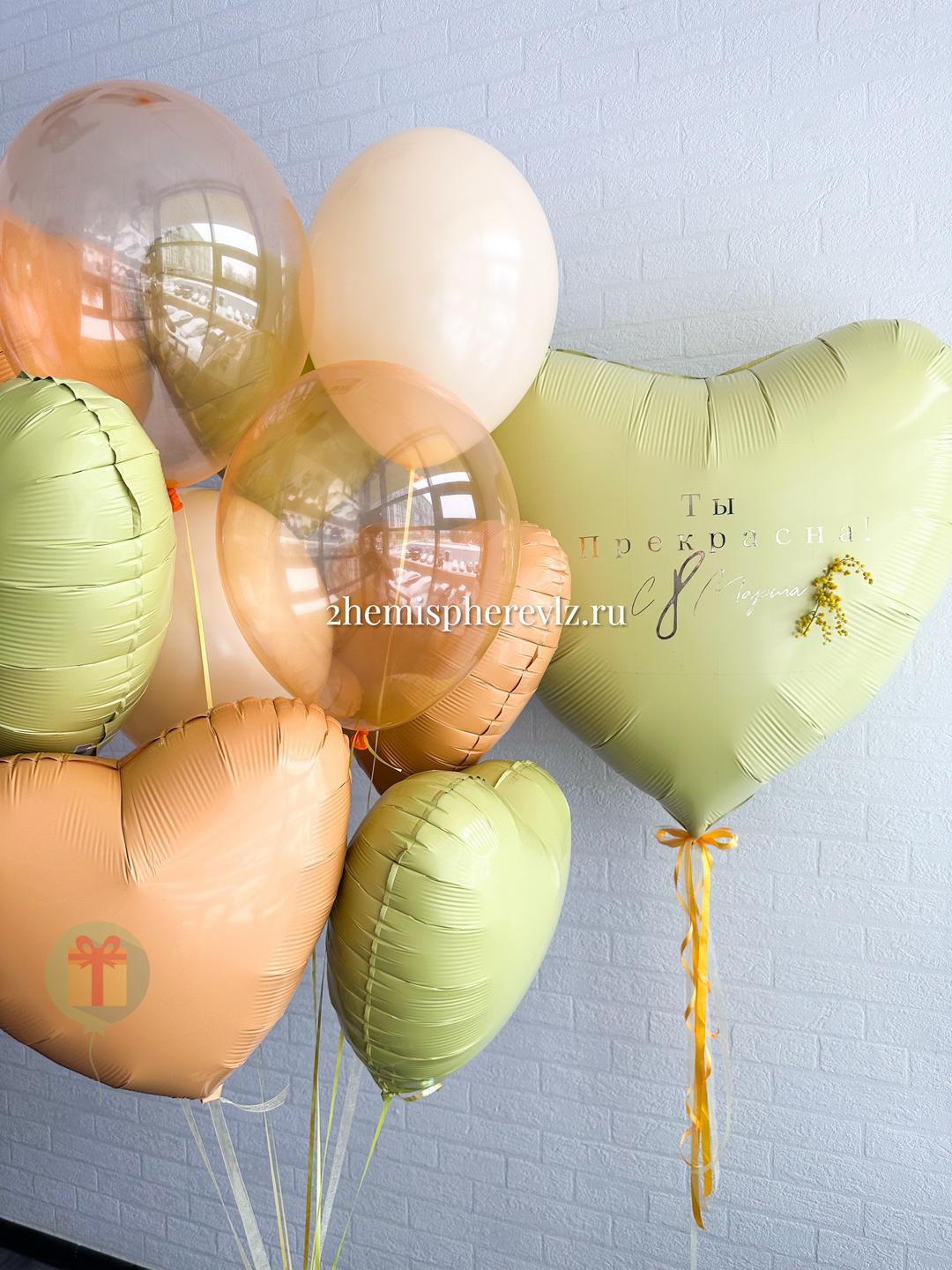 Состав набора: 6 фольгированных сердец 45 см, 2 шара пастель, 2 шара кристалл, грузик. Большое сердце 80 см с надписью на грузике. Грузики и пакеты включены в стоимость.
