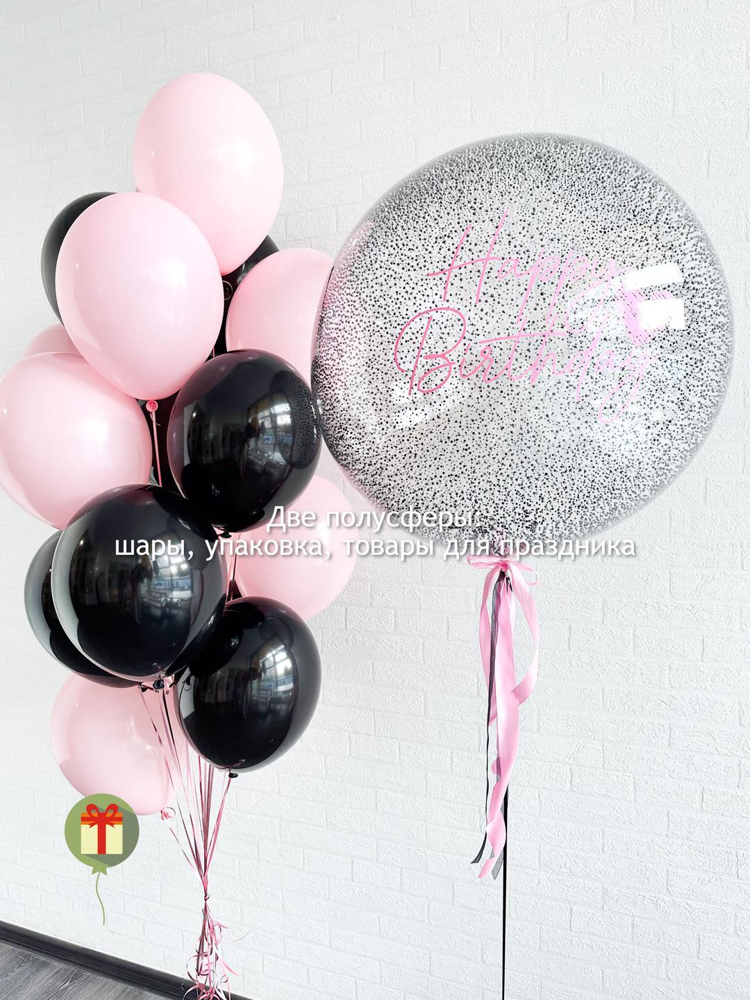 Большая сфера 60 см с пенопластом+ индивидуальная надпись, фонтан из 15 шаров пастель. Грузики и пакеты включены в стоимость.