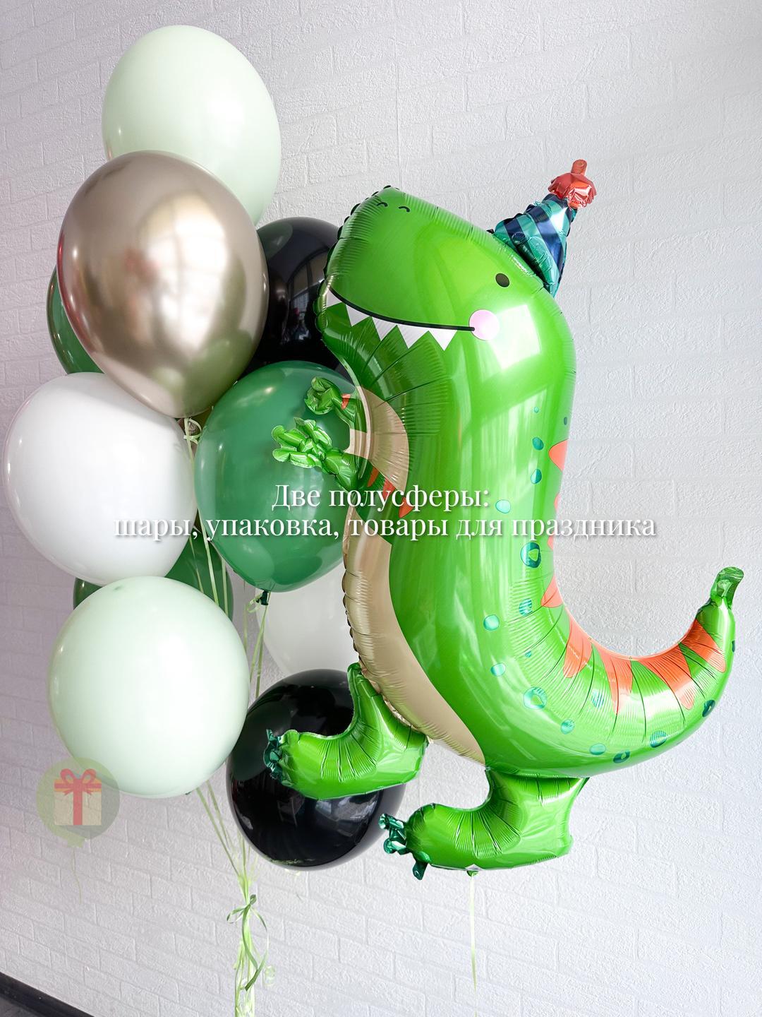 Набор шаров с динозавриком поднимет вашему ребенку настроение. В составе: Фигура динозаврика, фонтан из 10 шаров: 3 двойных шара, 1 шар хром и 6 шаров пастель. Грузики и пакеты включены в стоимость.