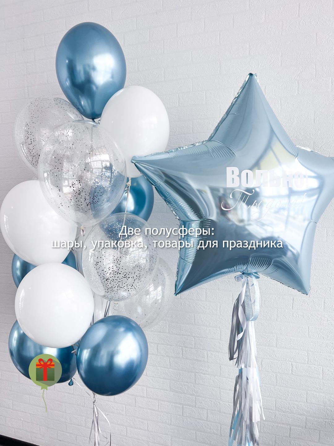 Фонтан в нежных оттенках с большой звездой 60 см с пушистым хвостом. В составе фонтана 5 латексных шаров пастель 35 см, 5 шаров хром 35 см, 5 шаров с конфетти 35 см. Грузики и пакеты включены в стоимость