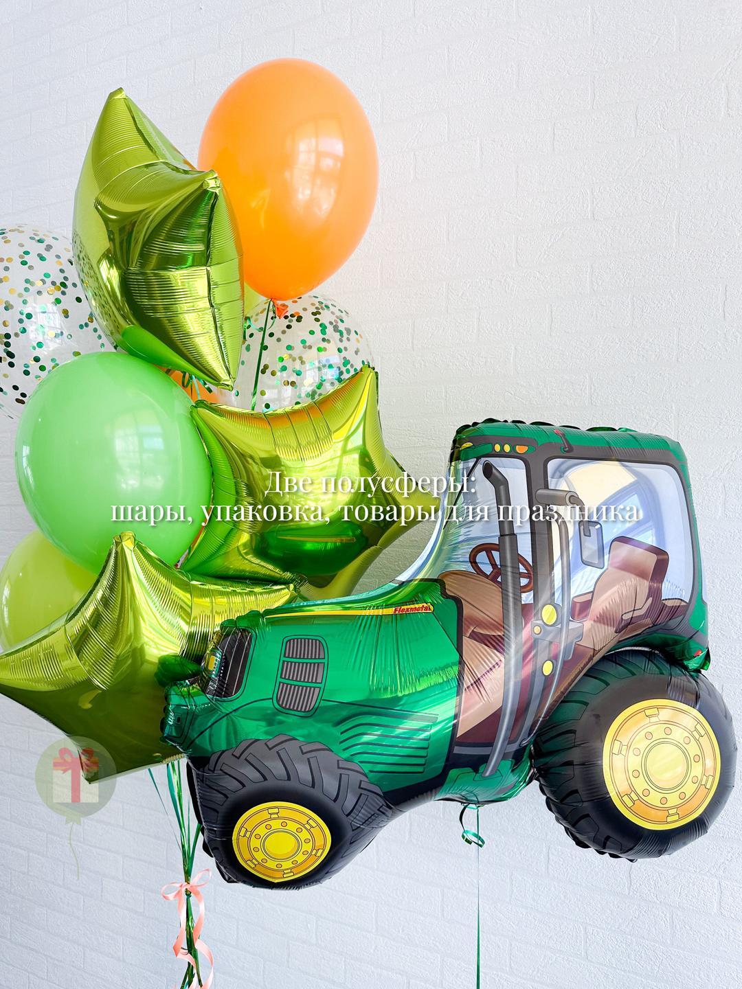 Набор для маленького любителя машин, отлично поднимет настроение имениннику. В составе: фольгированная фигура трактора и фонтан из 10 штук: 3 фольгированных звезды 45 см, 2 шара с конфетти и 5 шаров пастель. Грузики и пакеты включены в стоимость.